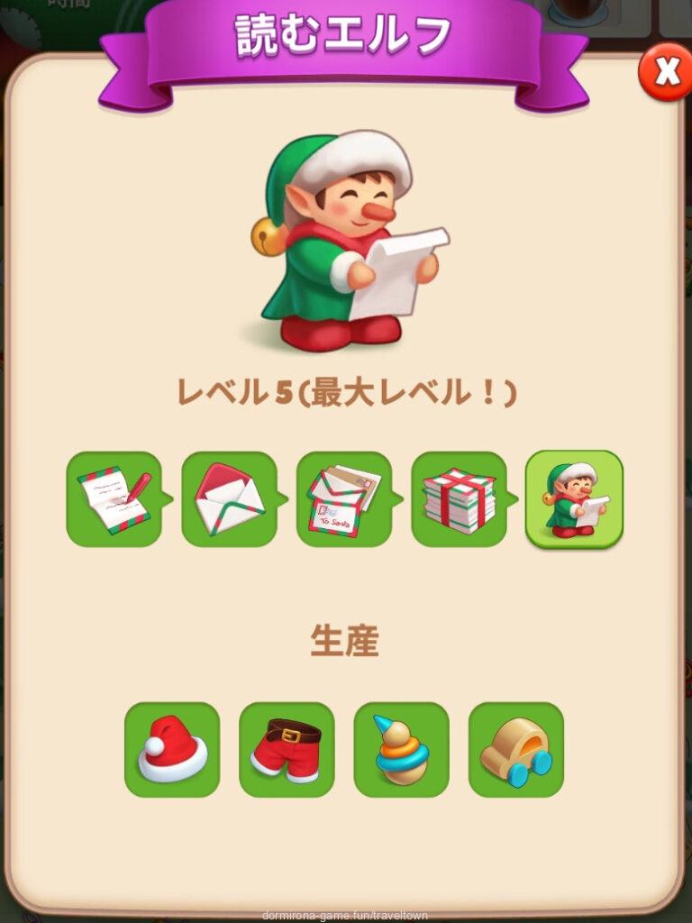- サンタの手紙をMAXまでマージすると読むエルフになりタップできるようになる(8タップ)⇒おもちゃ、サンタの服のライン