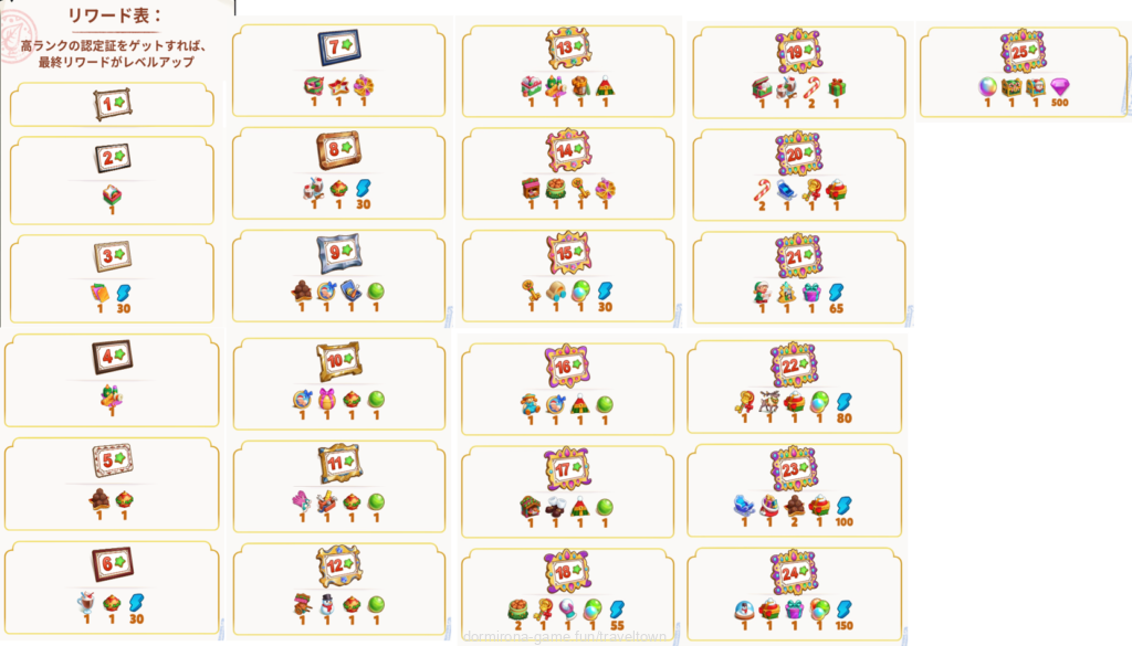 - 高ランクの認定証を手に入れるほど最終リワードがレベルアップする