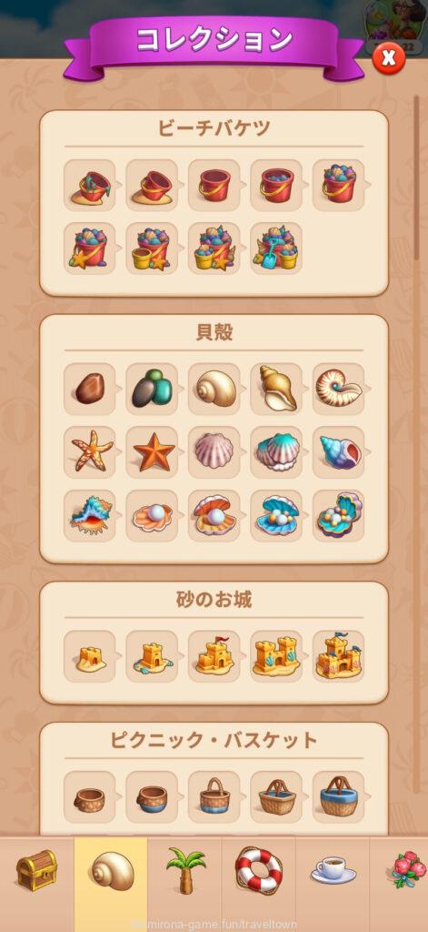- 左から二番目の貝アイコンのタブ、コレクション2の一覧