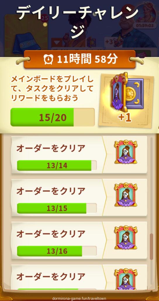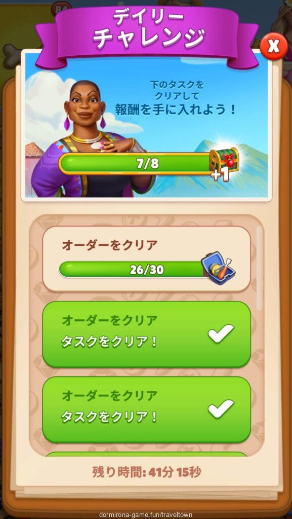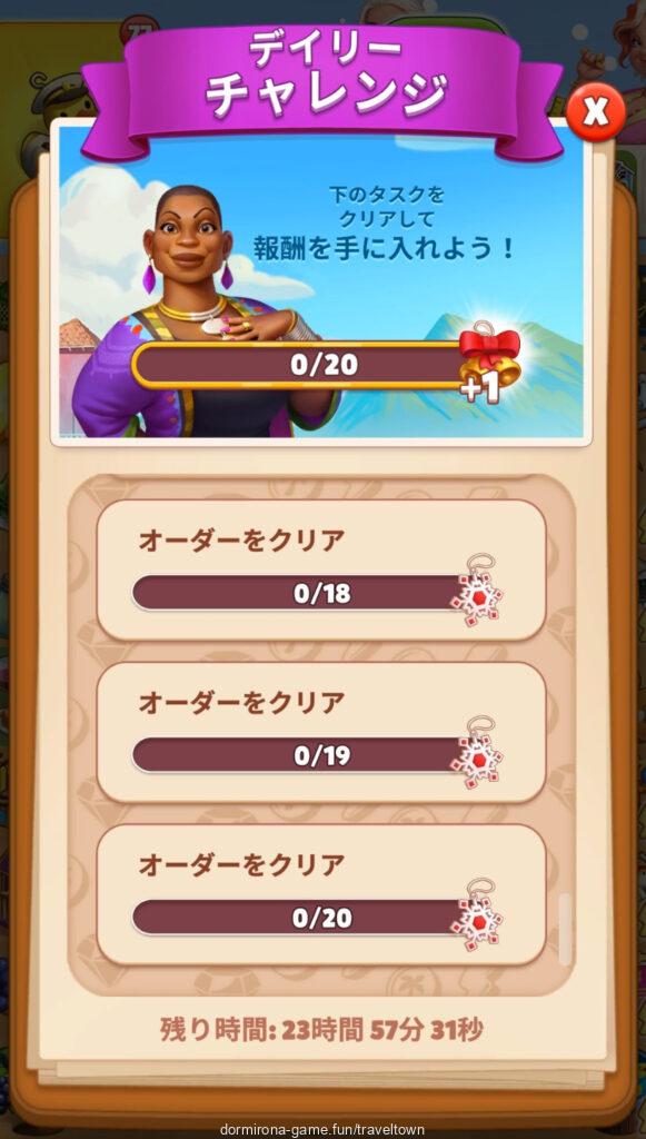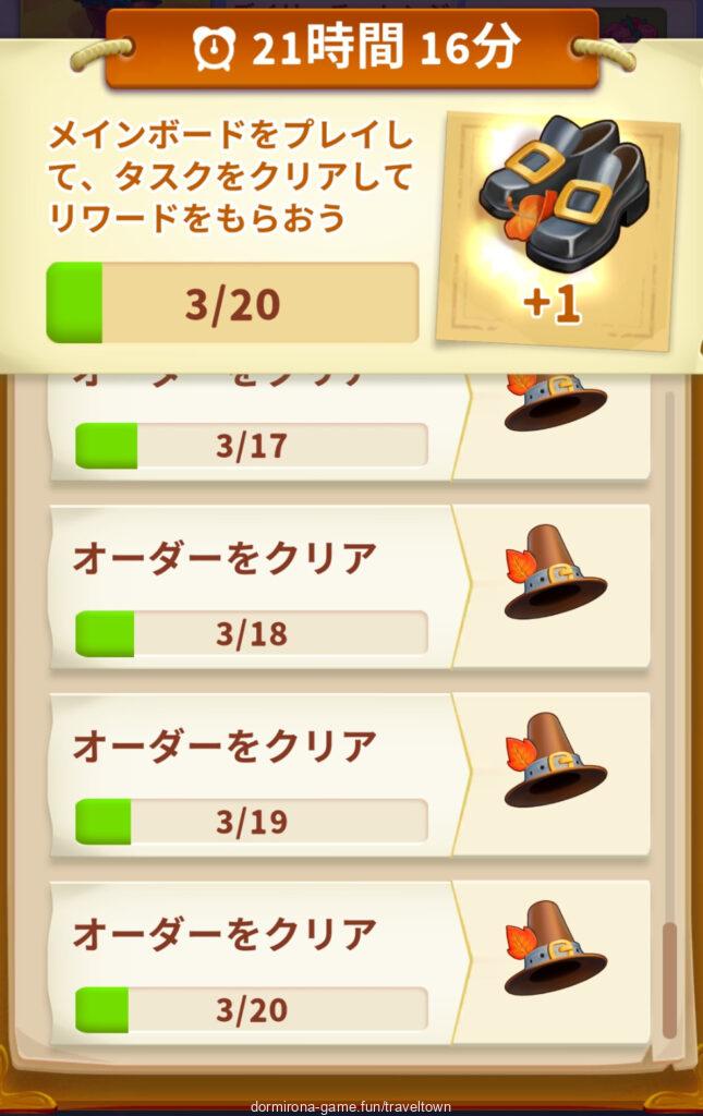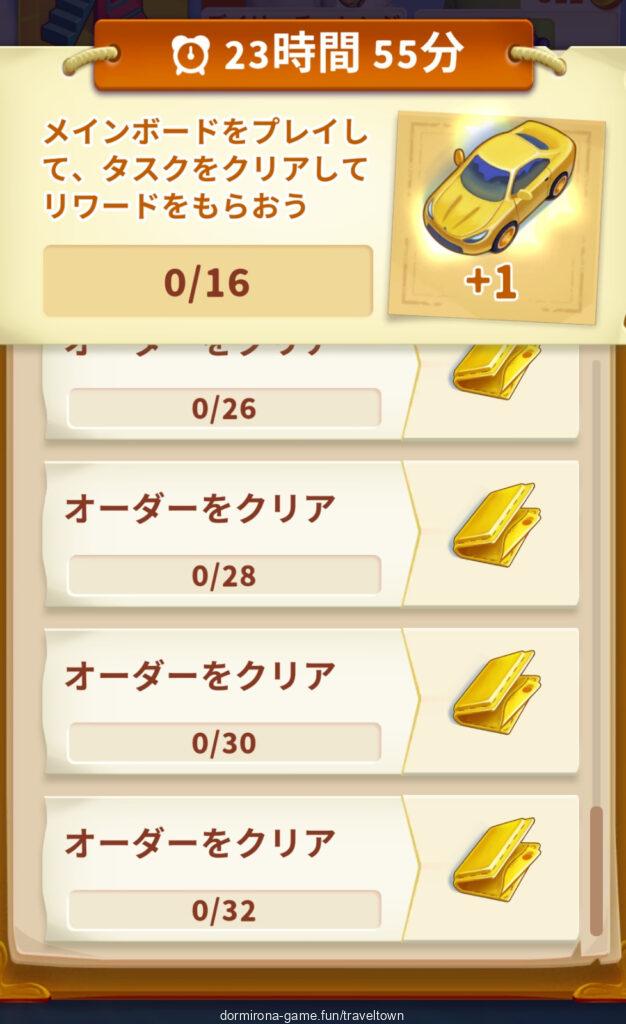 - 1日間、30オーダー+140マージ+5ダイヤ消費 前々回と同じ *コインを集めるタスクもある模様?