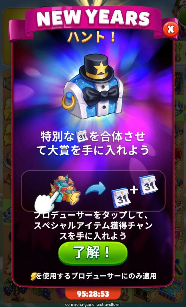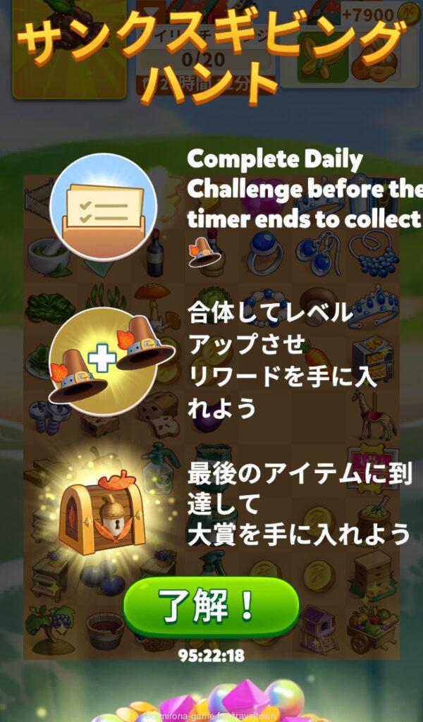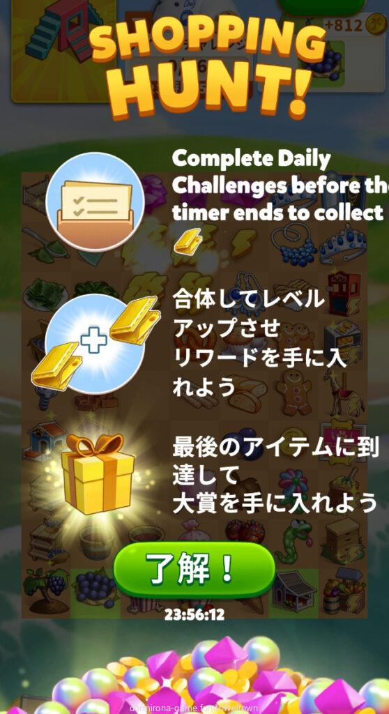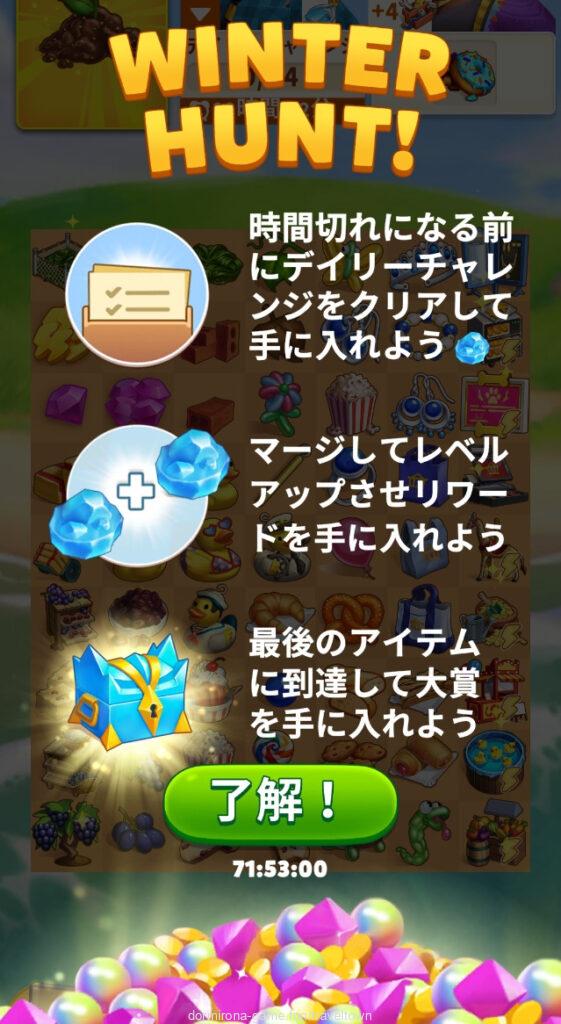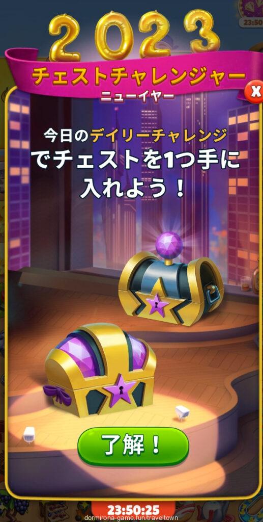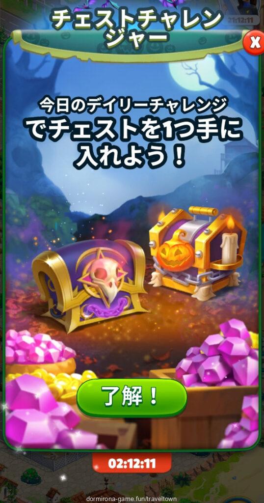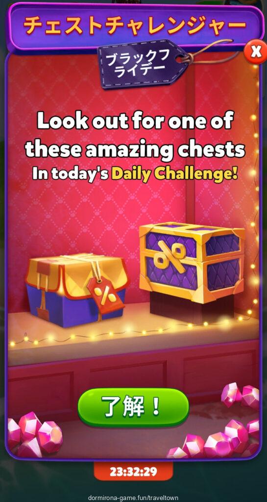 - 現在通常のデイリーチャレンジはレベルに応じたコインを獲得するオーダー/5ダイヤ消費/200マージの3種 アップデートに伴い宝箱がその場で開く仕様になった