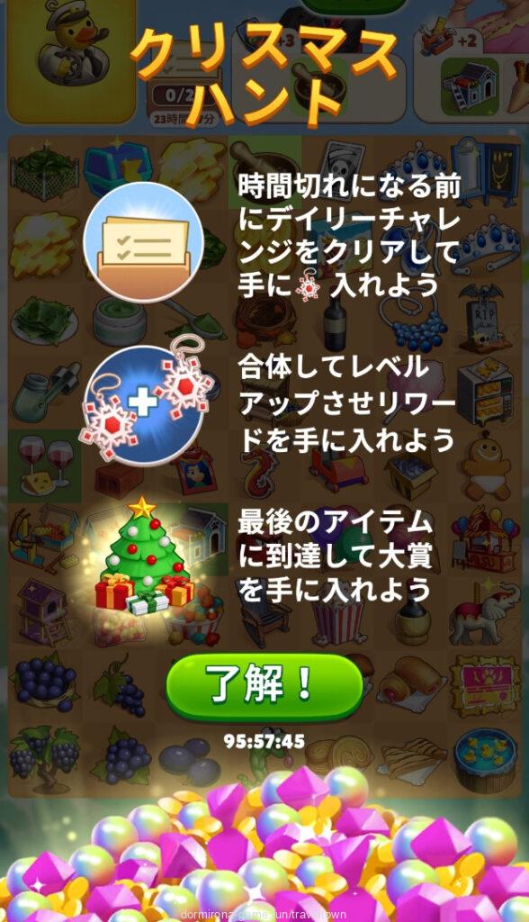 - 4日間、20オーダーをクリアしてもらえる雪の結晶の飾りをマージしてクリスマスツリーを作る
