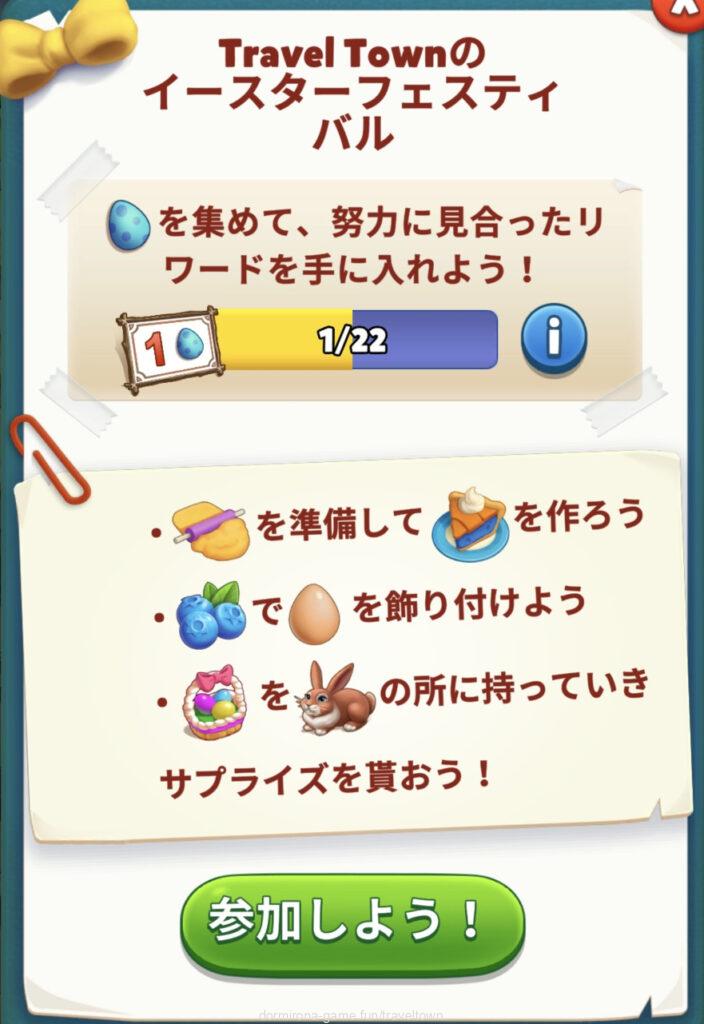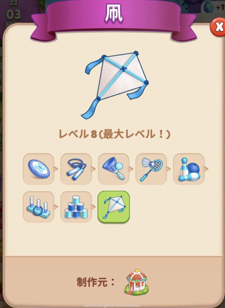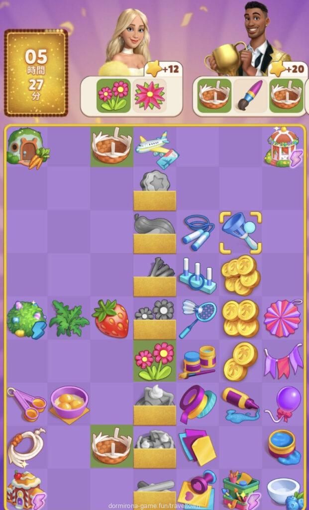 - レベルが上がるごとにもらえる飛行機のチケットが盤面にある状態でTravel Townの飛行機をタップする⇒メダル、ダイヤが出る