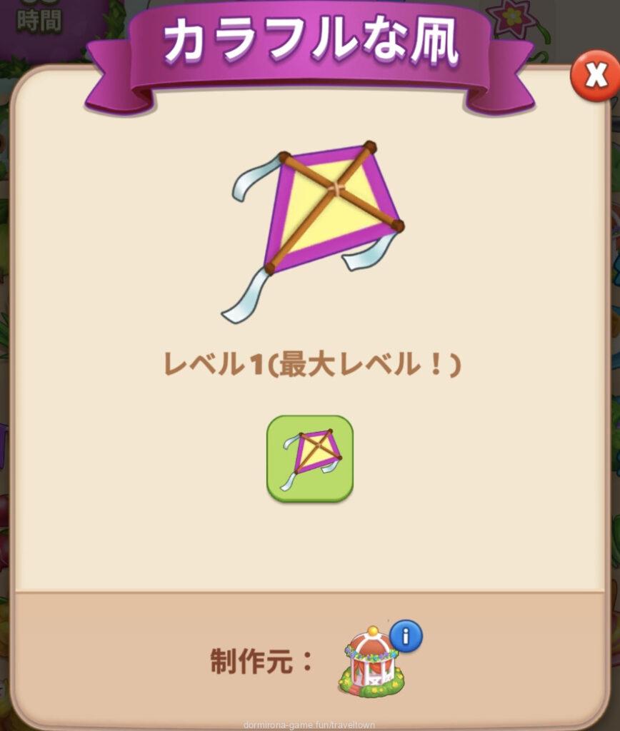 - カラフルな凧を盤面に紙のリースがある状態でタップすると華やかな凧になる