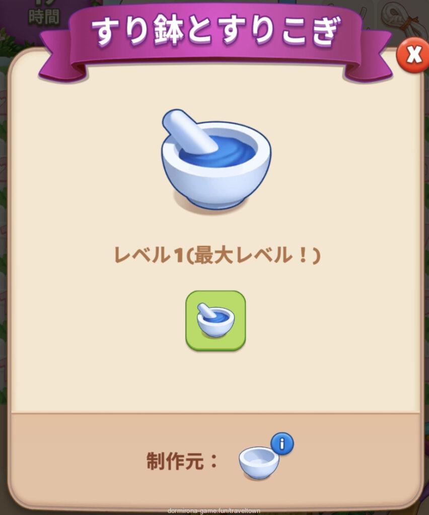 - LV11の柵に隠れている空のボウルをベリーMAX(ブルーベリー)がある状態でタップするとすり鉢とすりこぎになる