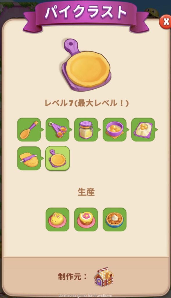 - パイクラストMAXからはブルーベリーパイ(⇒パイのライン)、ウサギスコーン(⇒スイーツのライン)が出る