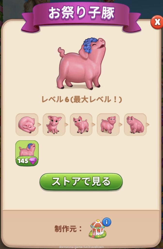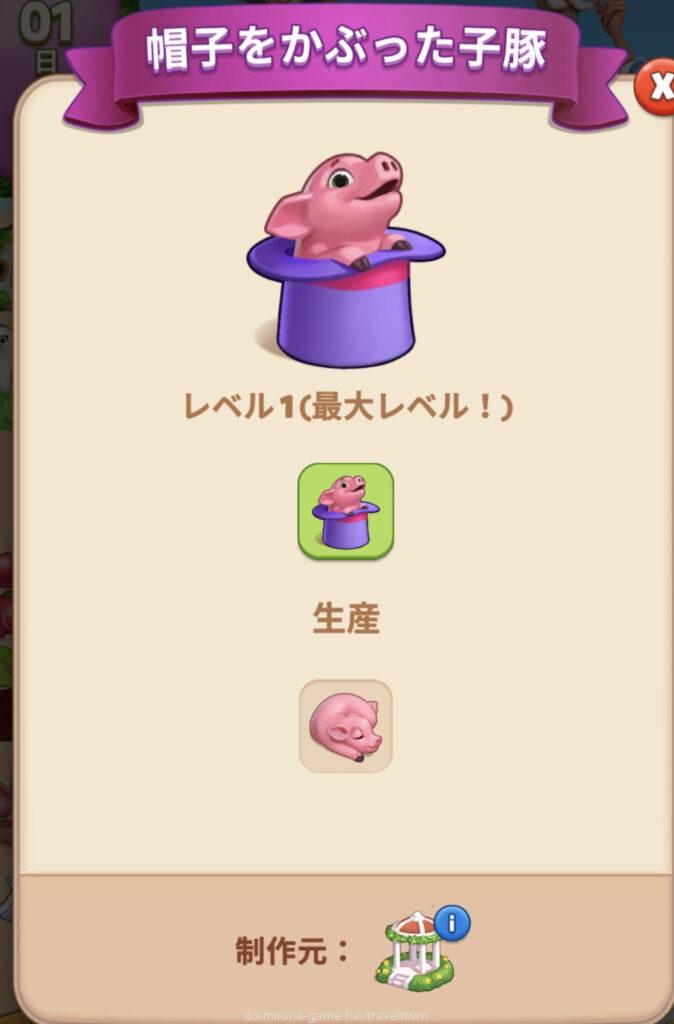 - パーティグッズMAX(シルクハット)になると帽子をかぶった子豚になりタップできるようになり(4タップ)眠る子豚が出る⇒豚のライン