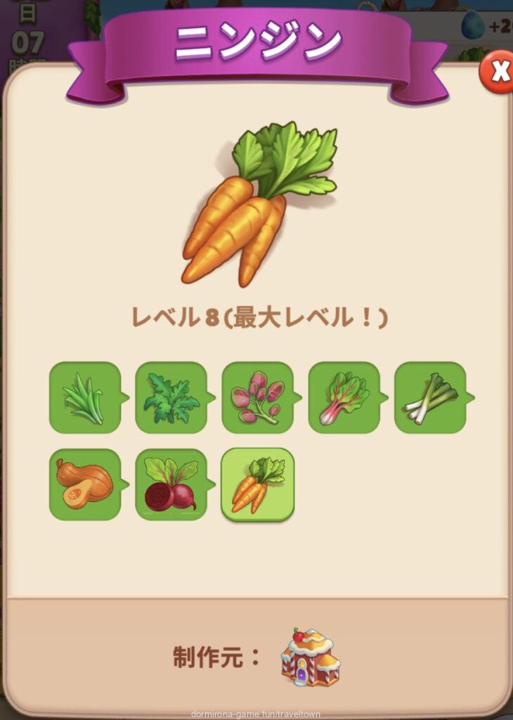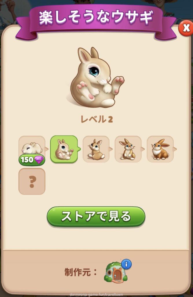 - Lv20の柵に隠れている秘密の家を野菜MAX(ニンジン)がある状態でタップするとウサギの家になり、時間経過でタップできるようになり(4タップ)眠るウサギが出る⇒ウサギのライン