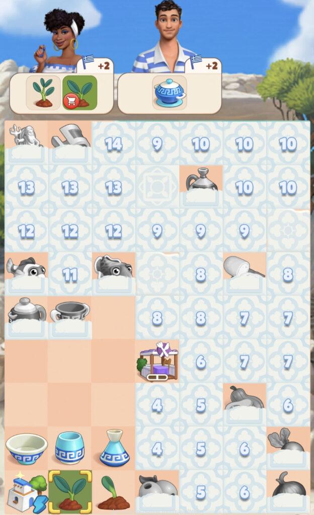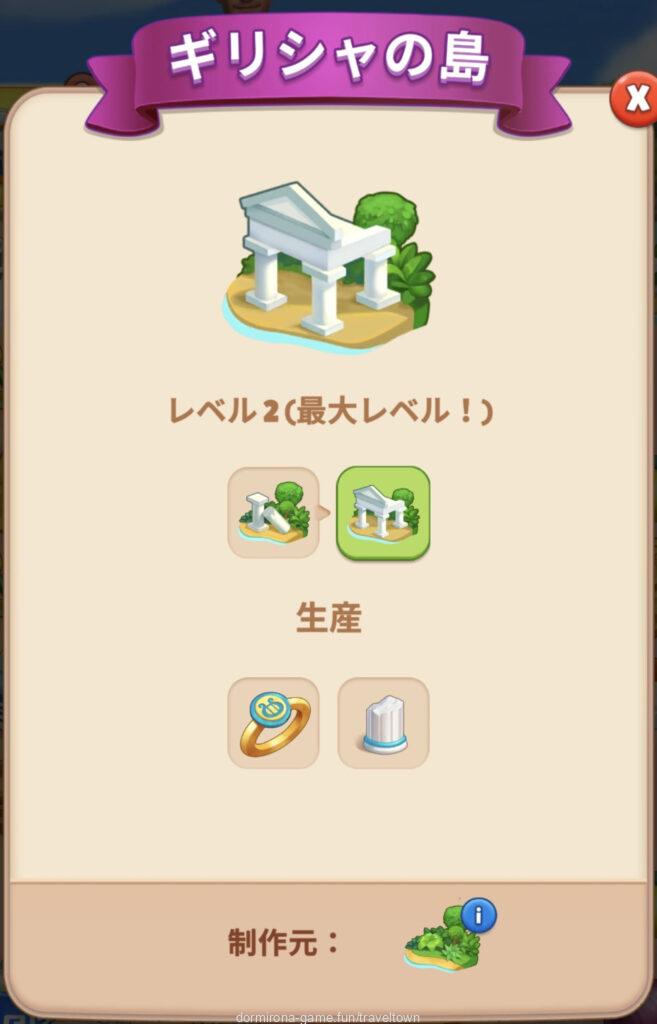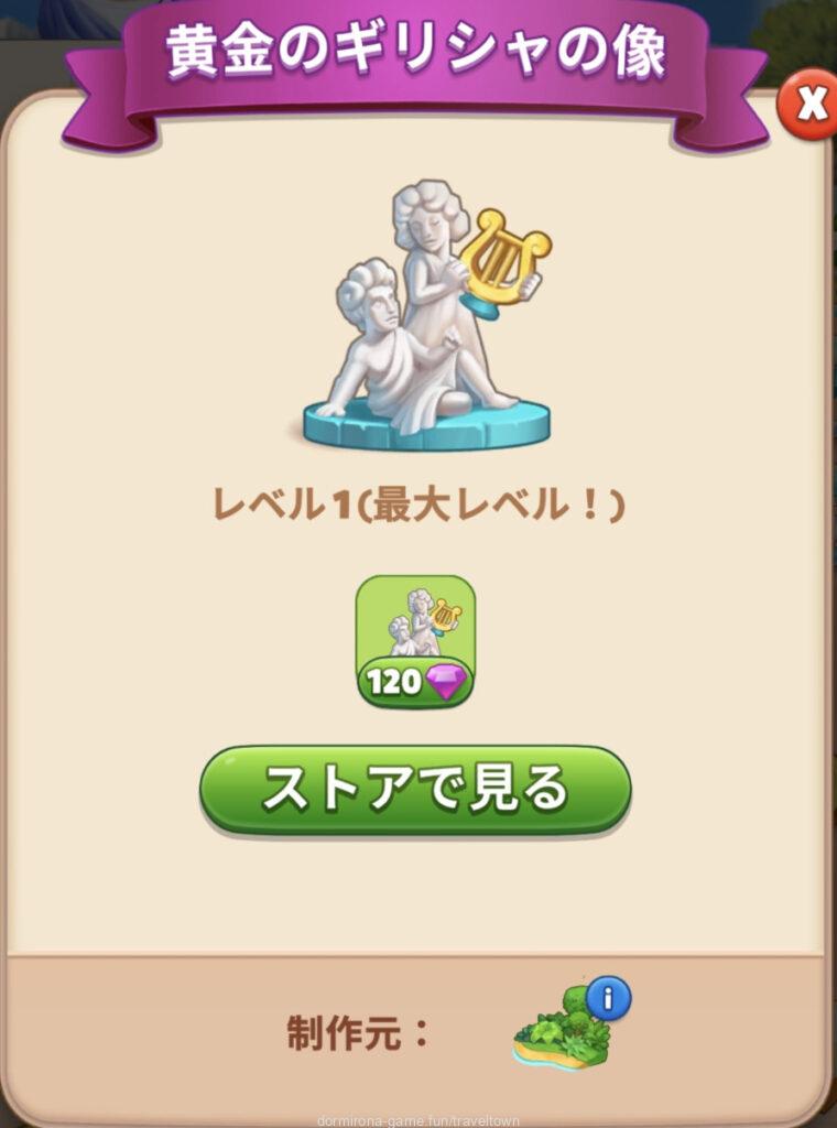 - Lv11のタイルに隠れている未知の島に報酬のギリシャの船をマージするとギリシャの島になり、タップすると壊れた柱の土台をタップが出る⇒像のライン
