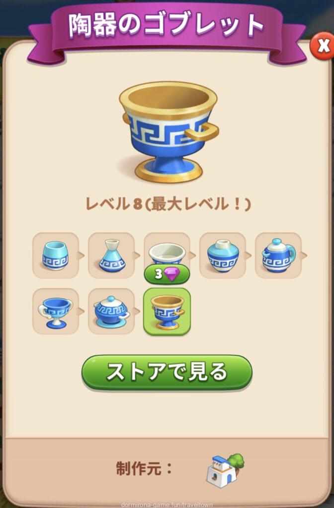 - 初期配置のギリシャの家Lv1からは陶器のコップが出る⇒陶器のライン