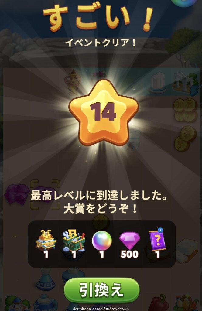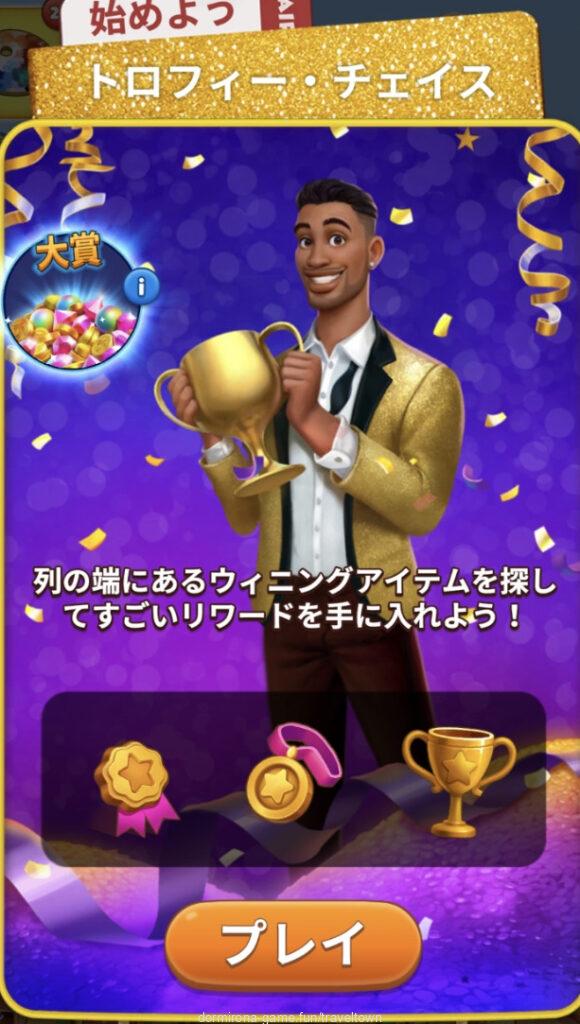 - レベルが上がるごとにもらえる飛行機のチケットが盤面にある状態でTravel Townの飛行機をタップする⇒メダル、ダイヤが出る