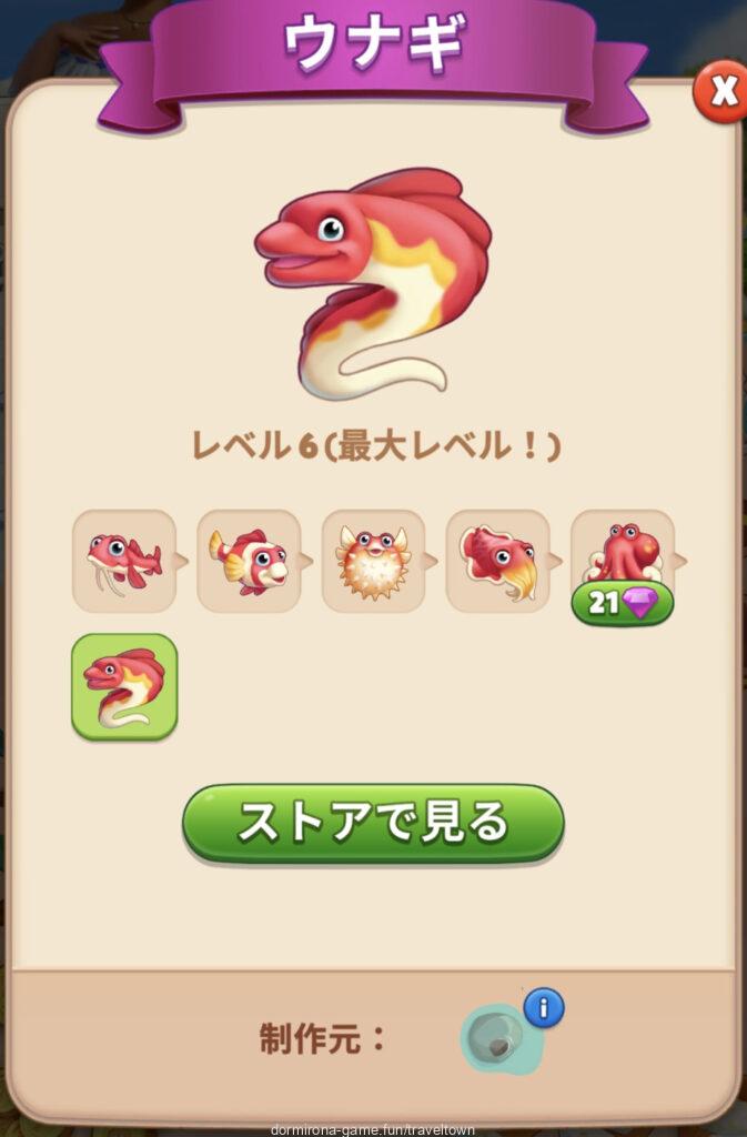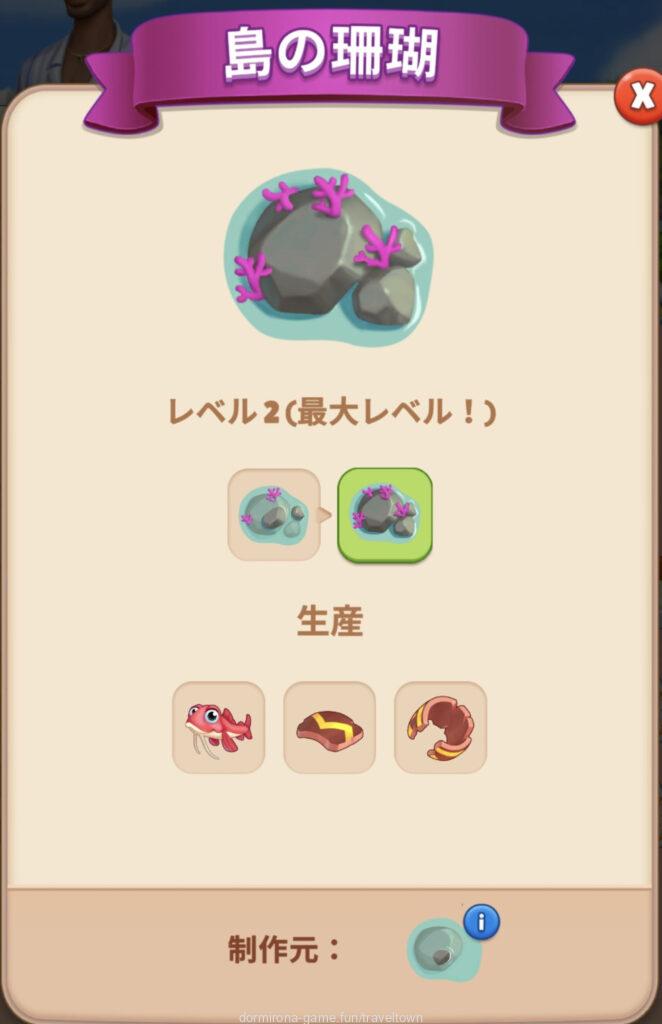 - Lv11の報酬でもらえる水中の珊瑚をマージして島の珊瑚Lv2になるとレッドフィッシュが出るようになる⇒魚のライン