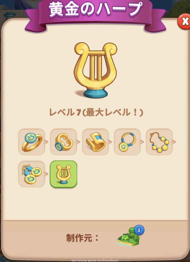 - ギリシャの島Lv2になると指輪が出る⇒黄金のハープのライン