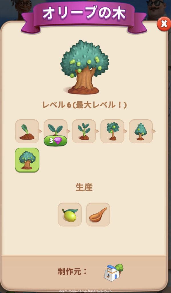 - オリーブの木MAXになるとグリーンオリーブ、木のスプーン(木の食器のライン)が出て(6タップ)、月桂樹の葉になる