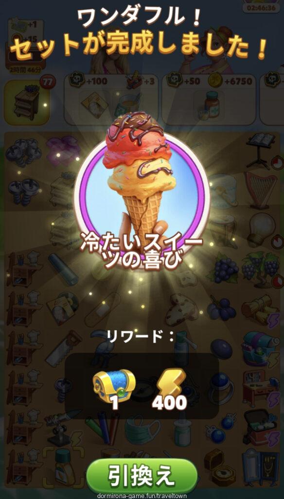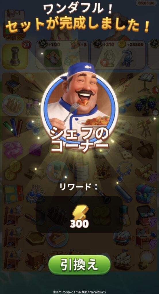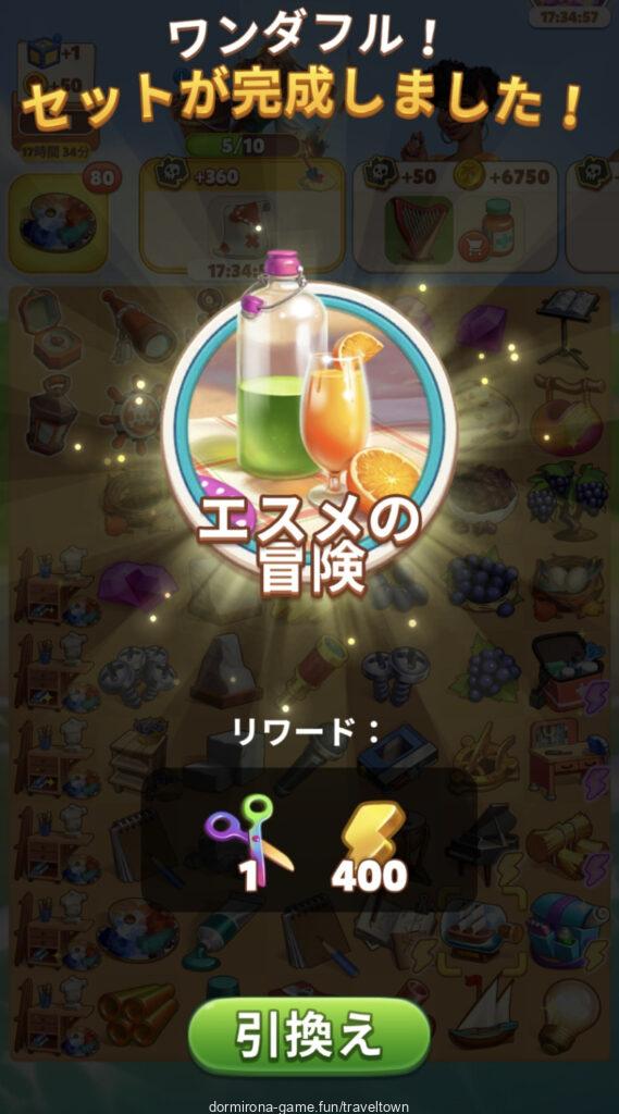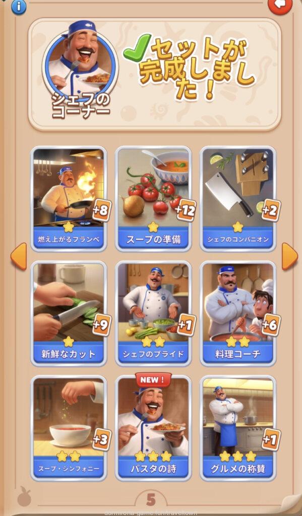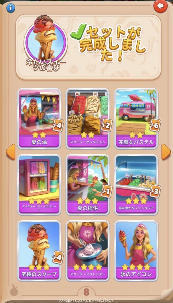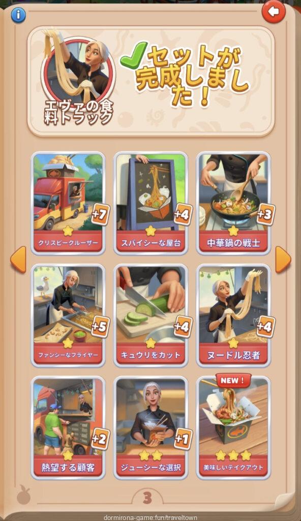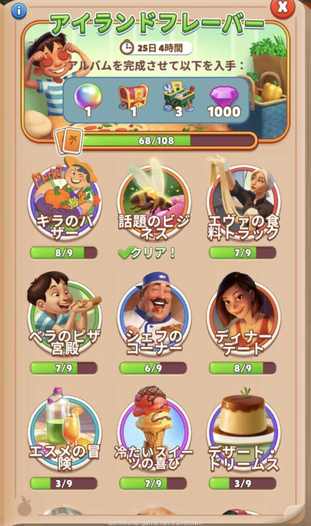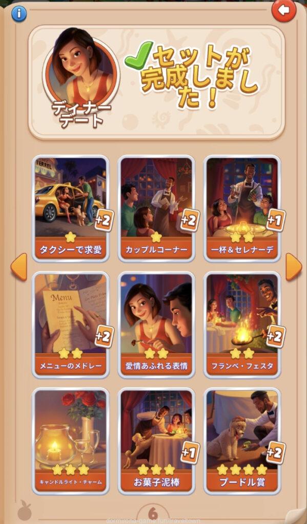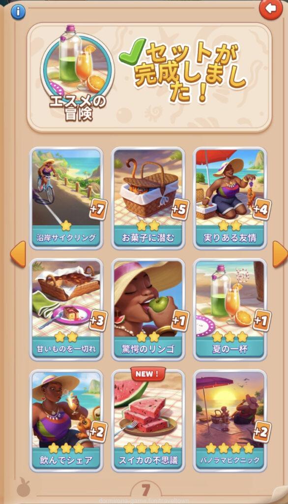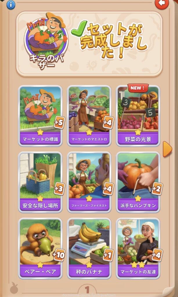 - アルバムのページごとにセットを完成させると画面上部に表示された報酬がもらえる