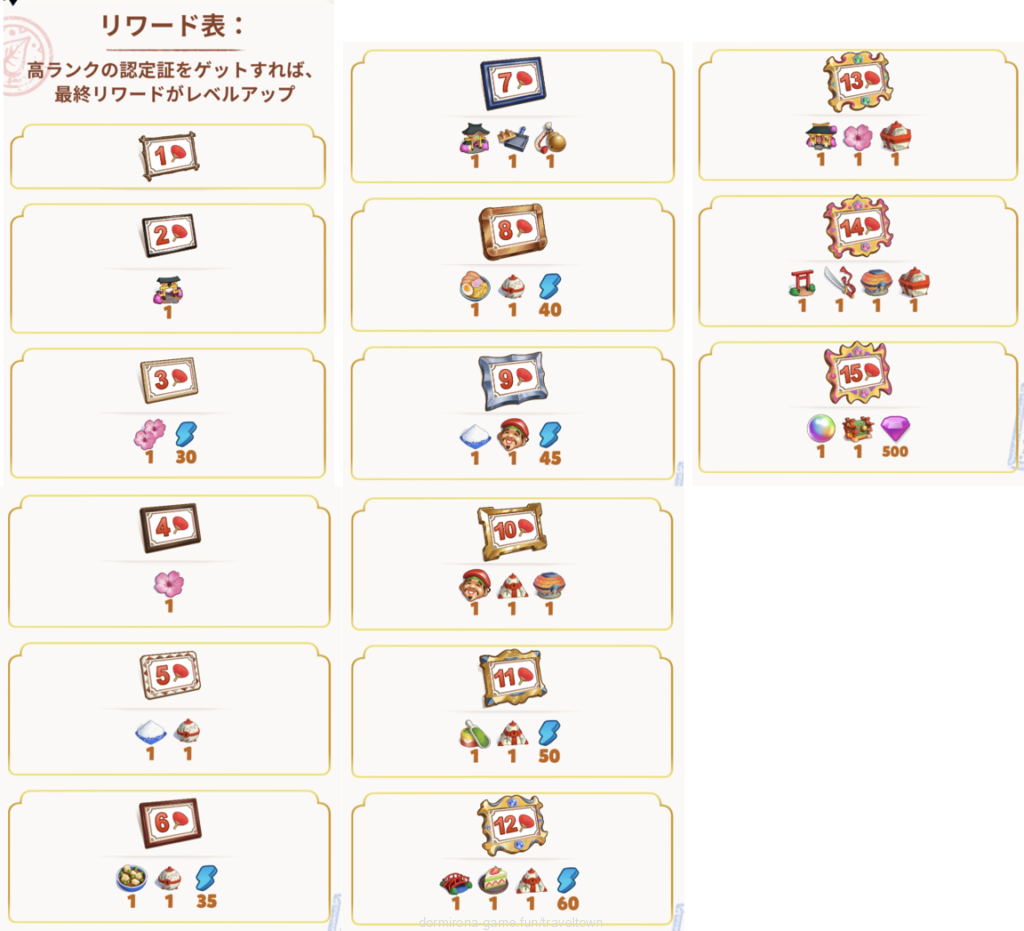 - 高ランクの認定証を手に入れるほど最終リワードがレベルアップする