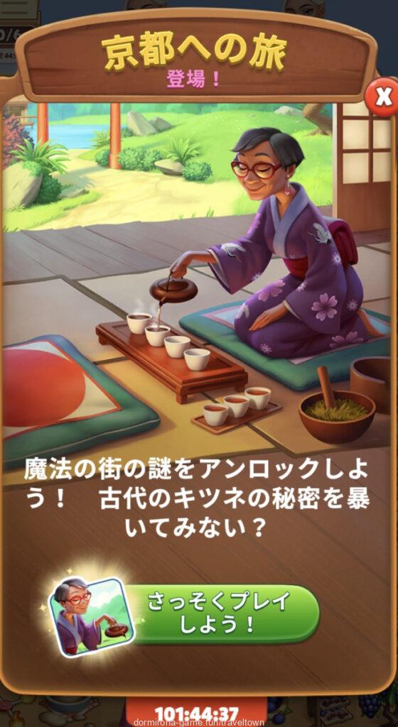 - 2種類のカメラを要求されているお弁当&抹茶の朝食ボウル、キツネ&芸者グッズ各2種類のMAXアイテムがある状態でタップする⇒旅行のメモリー