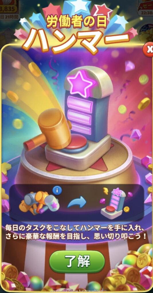 - 途中で木製、金属製、黄金のハンマーがもらえる