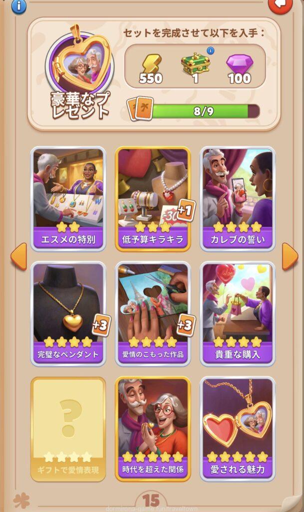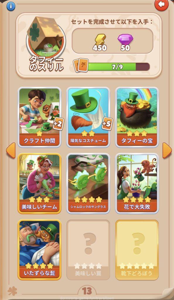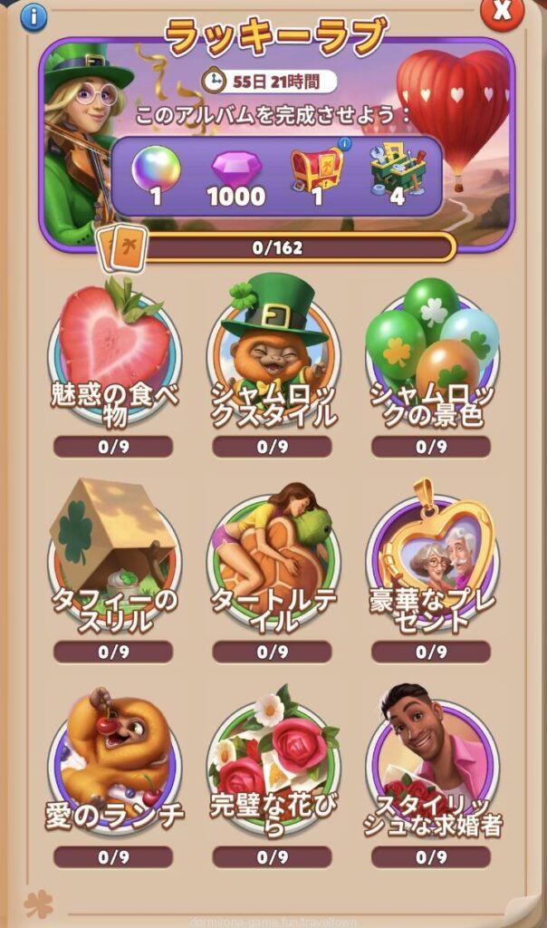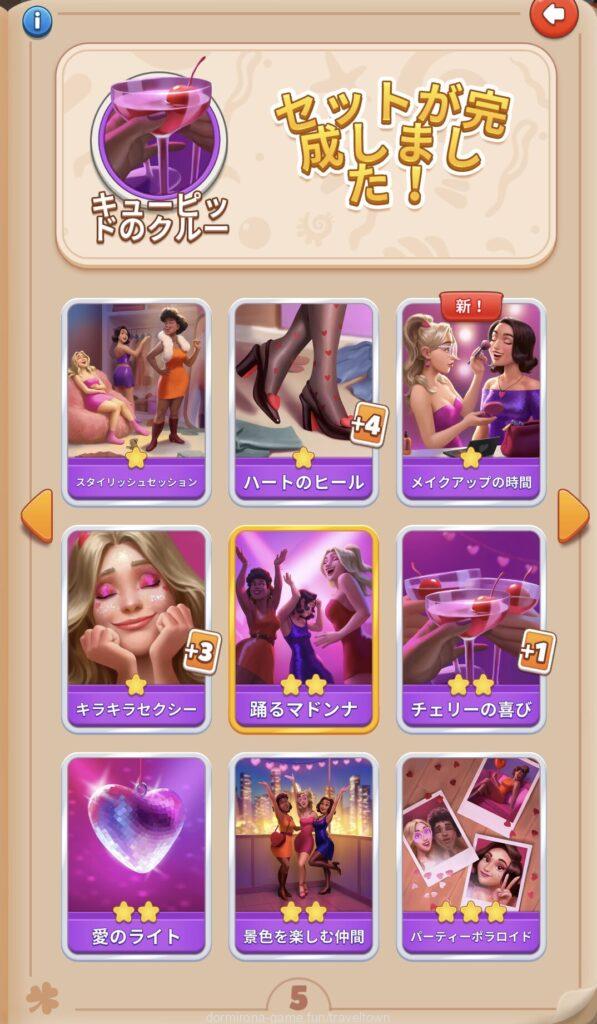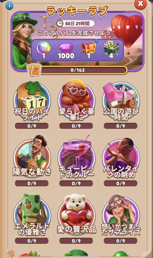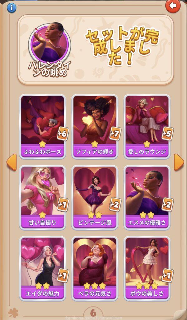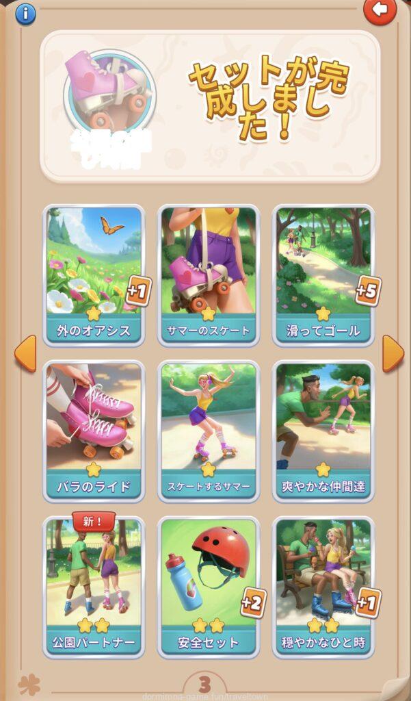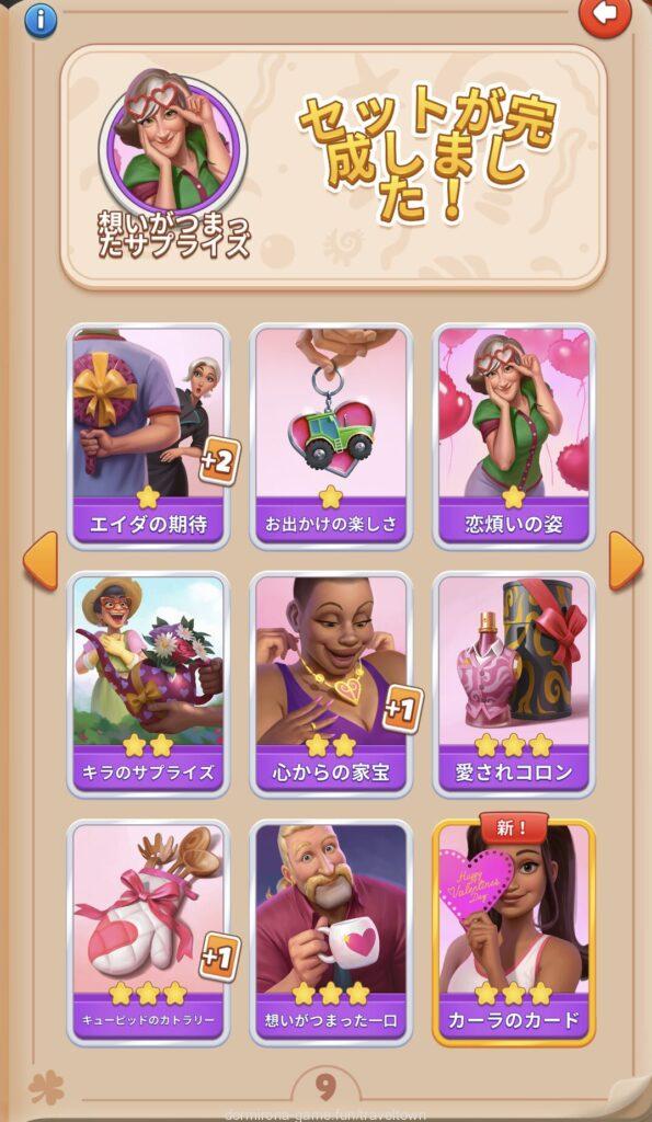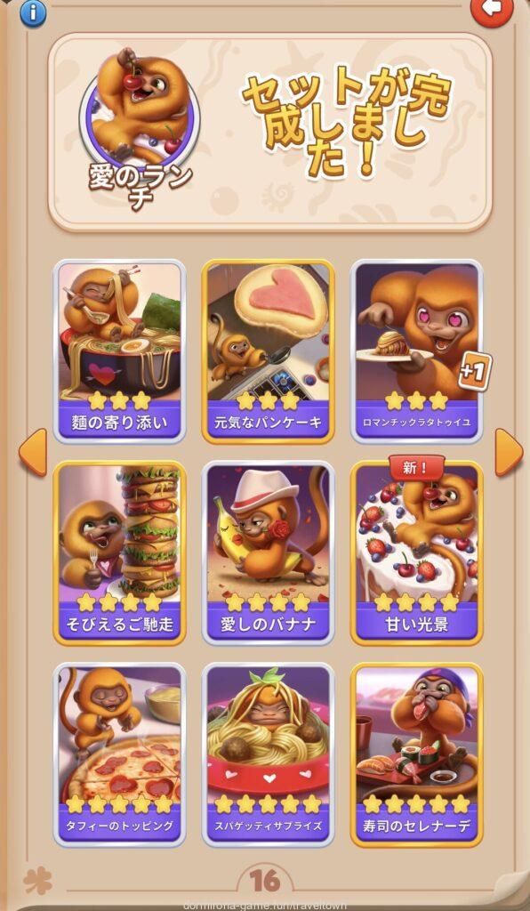 - アルバムのページごとにセットを完成させると画面上部に表示された報酬がもらえる