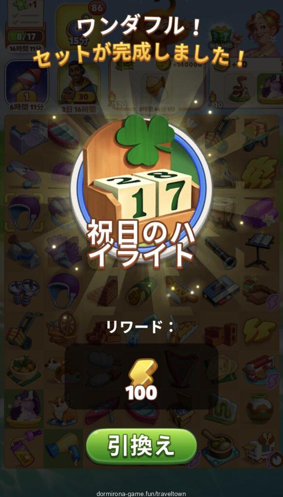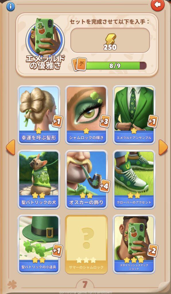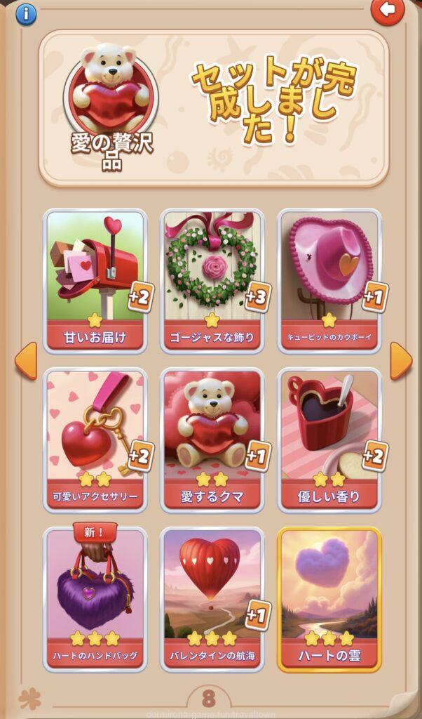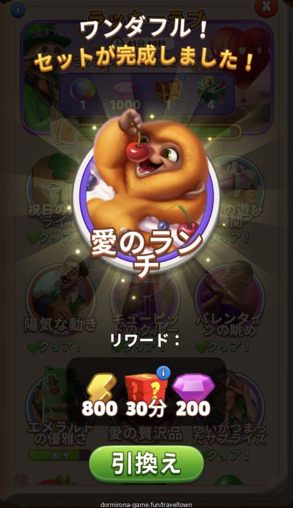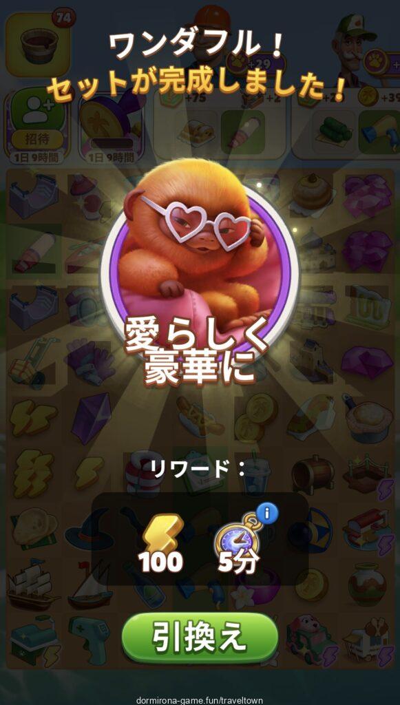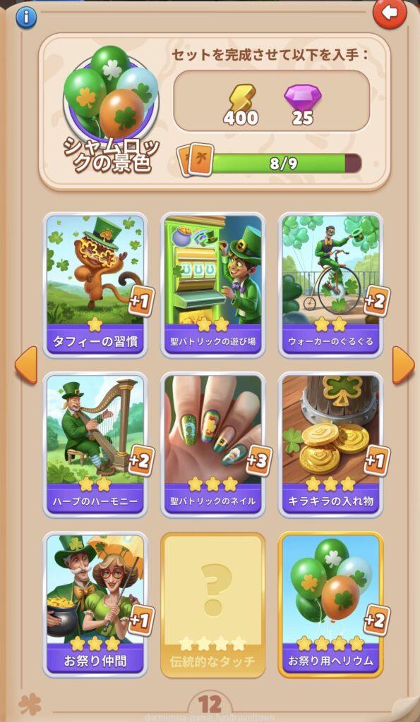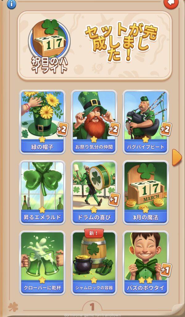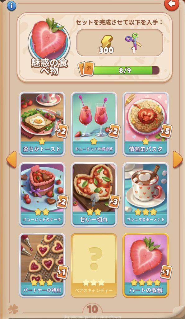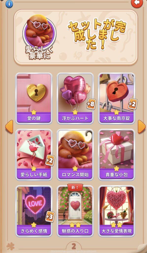 - アルバムのページごとにセットを完成させると画面上部に表示された報酬がもらえる