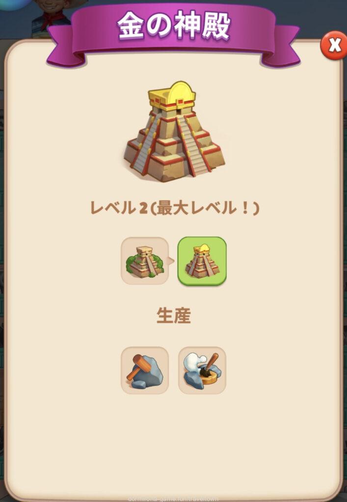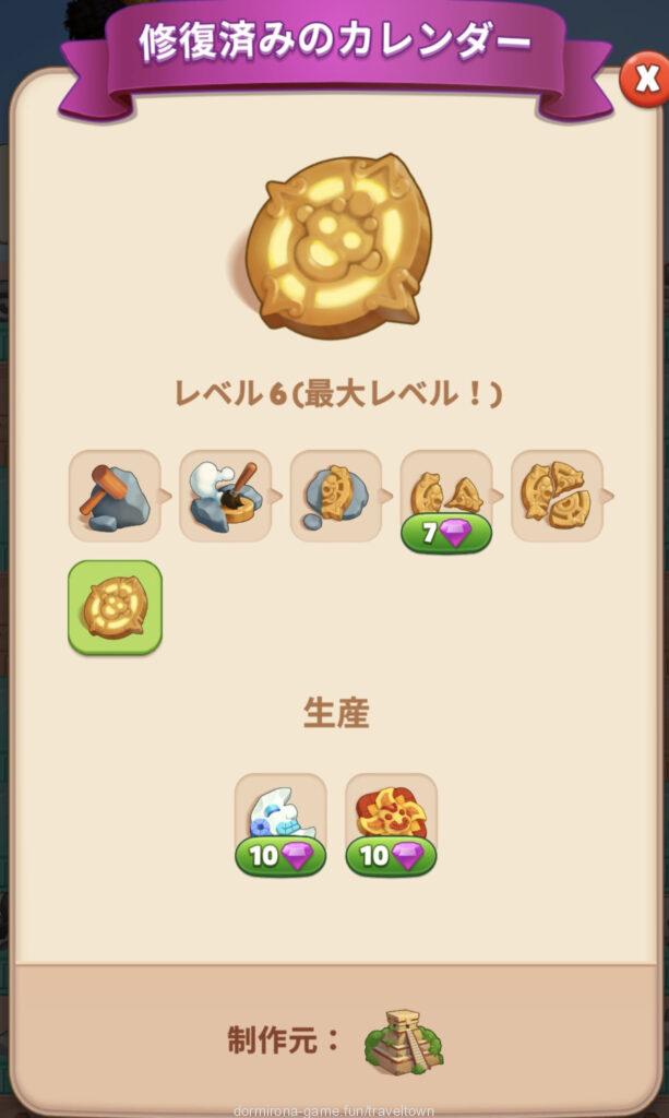 - 初期配置の王家の神殿ハンマー+岩が出て、MAX(修復済みのカレンダー)からは太陽と月が出る