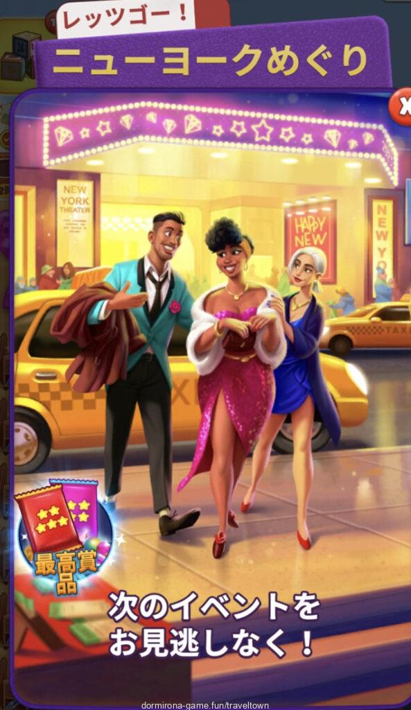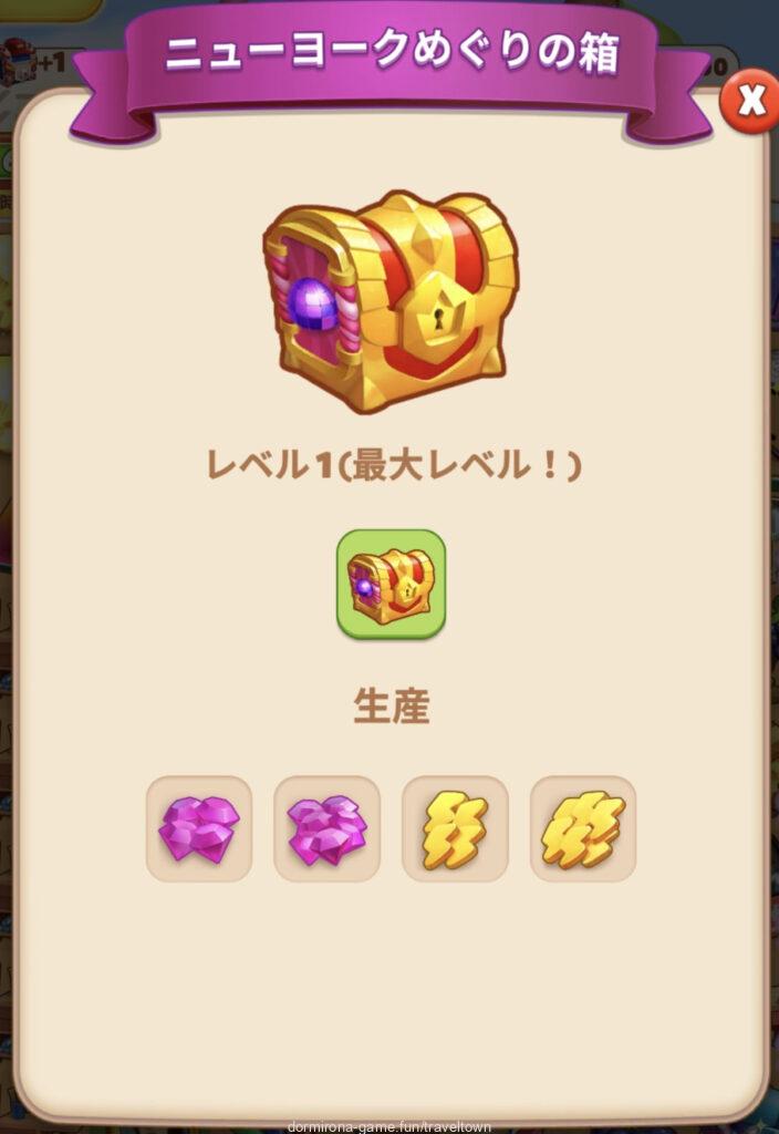 - NYの地図(大)Lv3になるとお土産ショップが出るようになる⇒MAXまでマージするとタップできるようになる⇒NYのお土産のライン