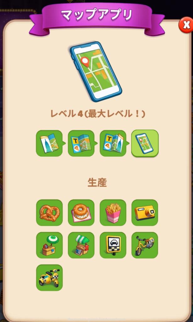 • 地図Lv4(マップアプリ)になるとデジタルカメラが出るようになる⇒16×2回最後までタップする(パーティグッズのライン)とランダムでNYメモリー(写真)になる