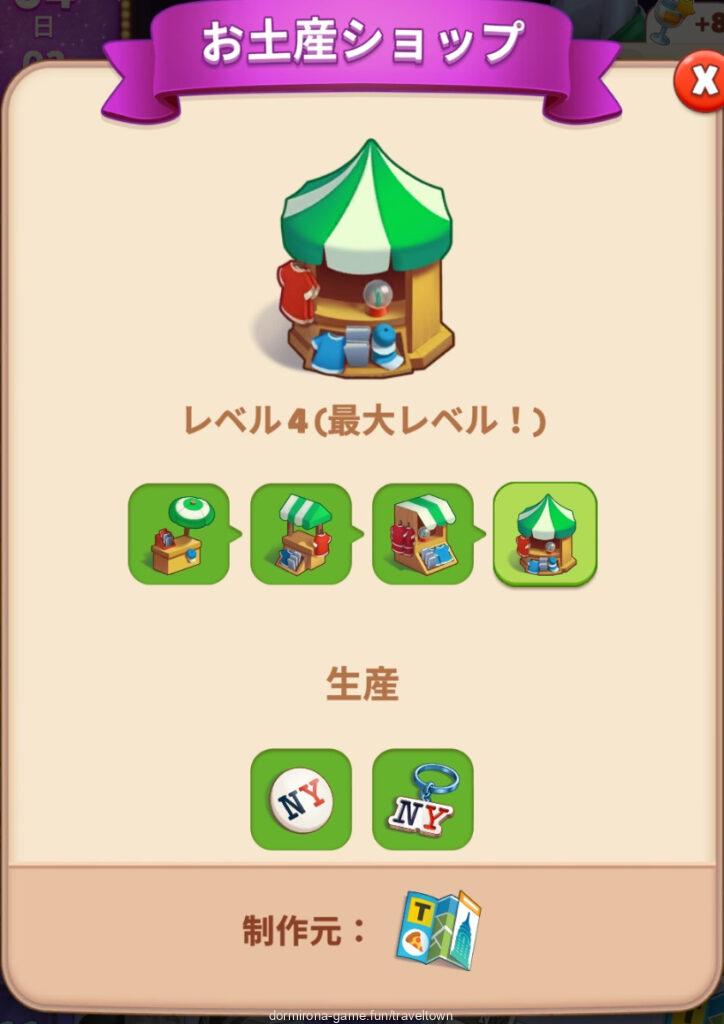 • 地図Lv3になるとお土産ショップが出るようになる⇒MAXまでマージするとタップできるようになる⇒NYのお土産のライン