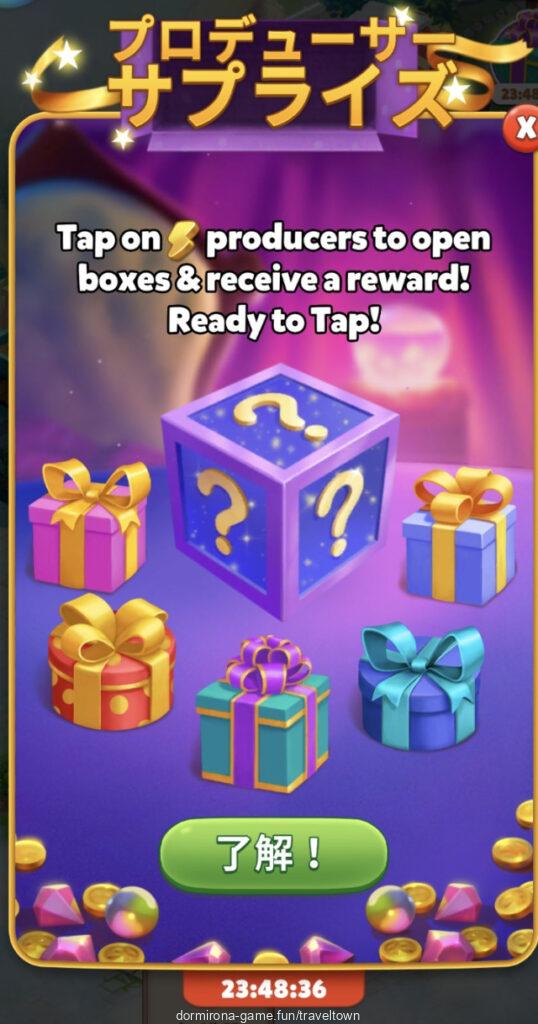 - 低確率でプロデューサーからプロデューサーサプライズのBOXも出る