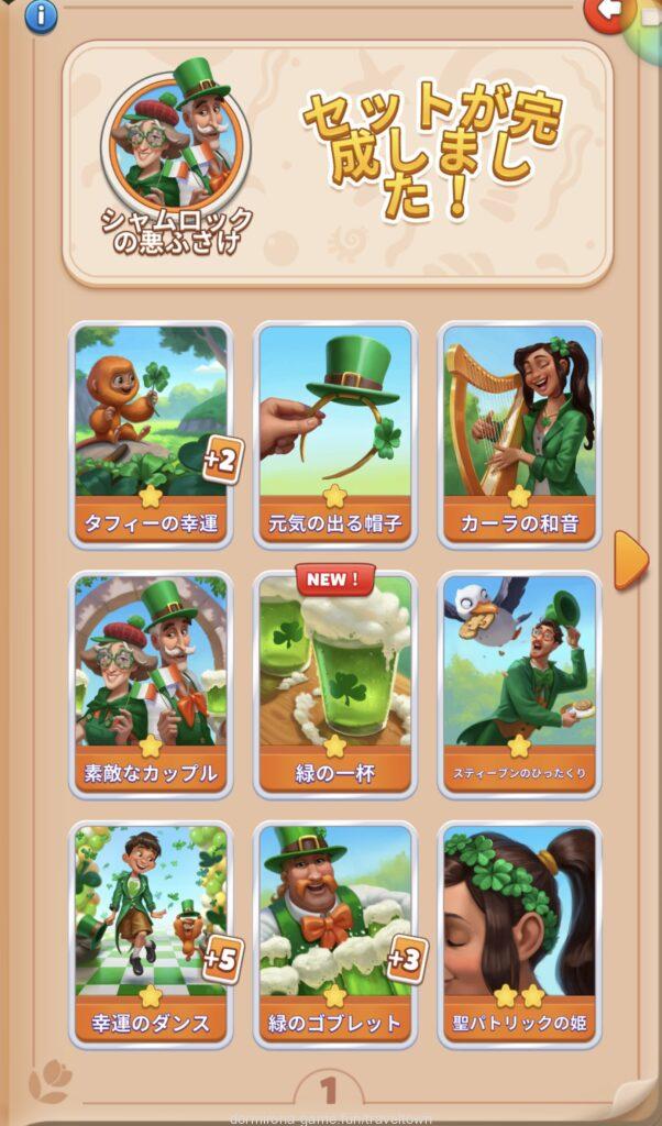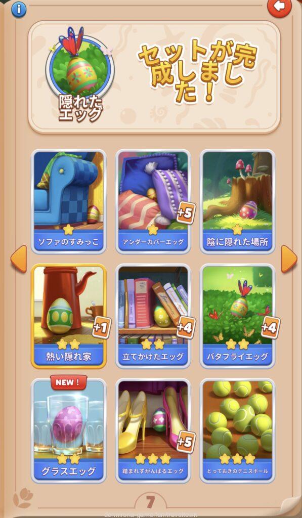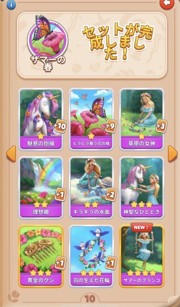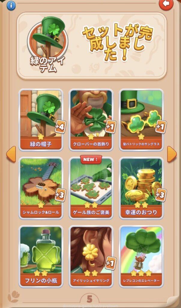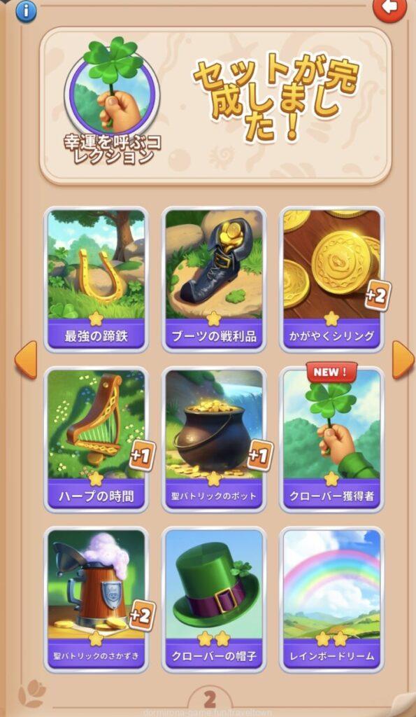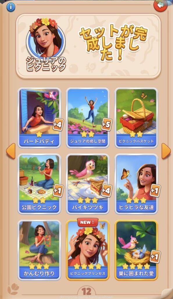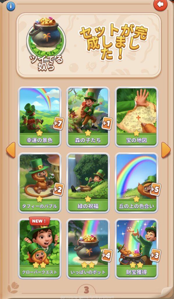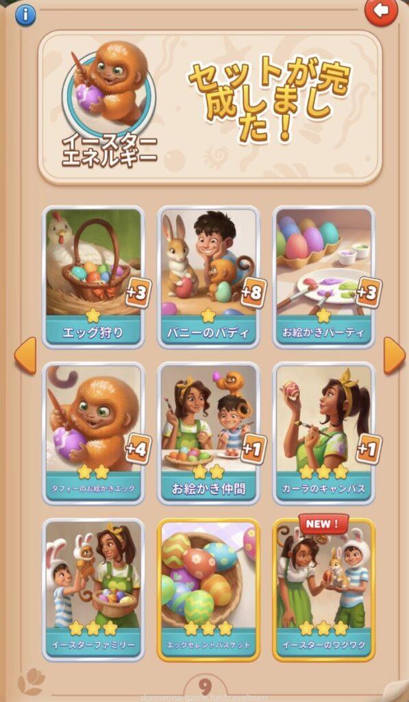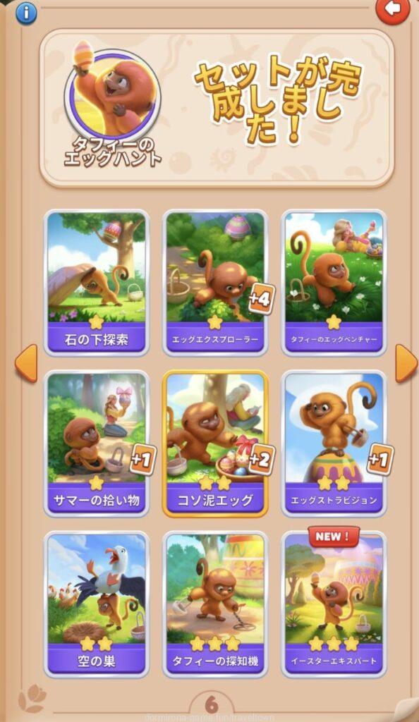 • アルバムのページごとにセットを完成させると画面上部に表示された報酬がもらえる