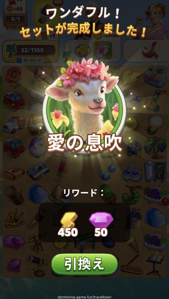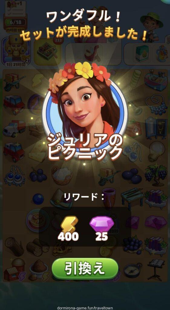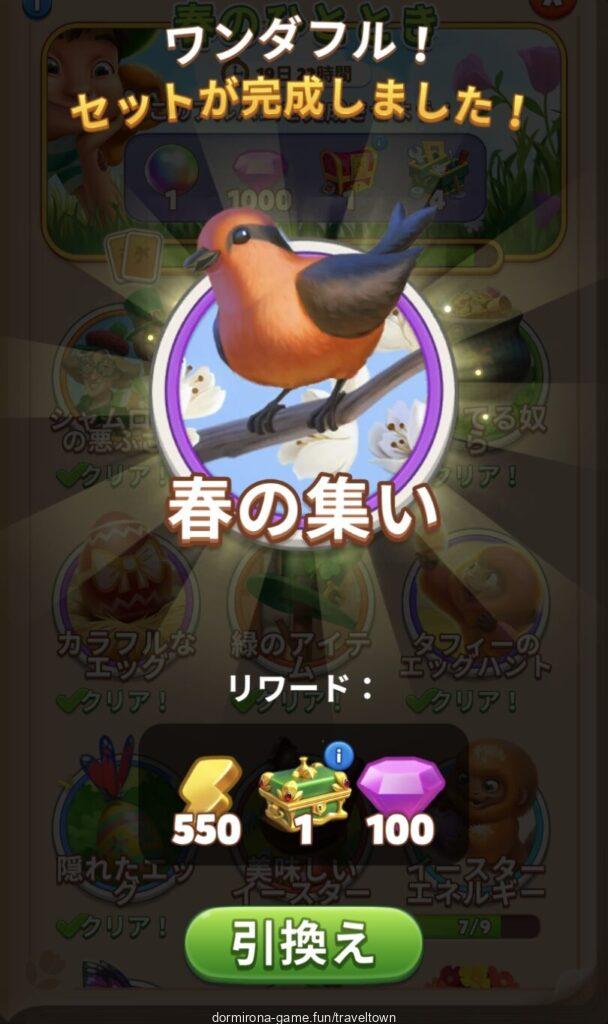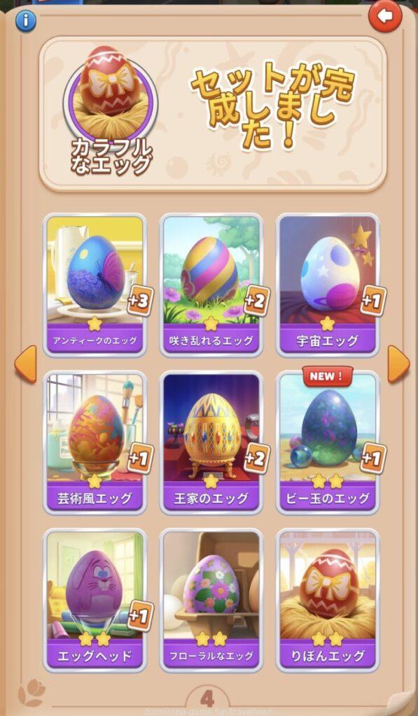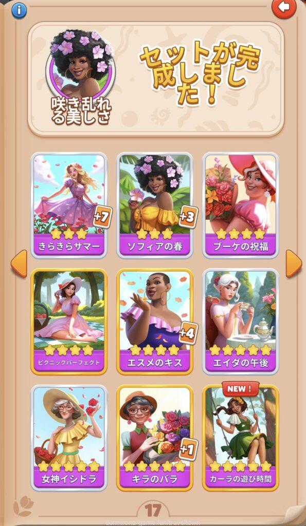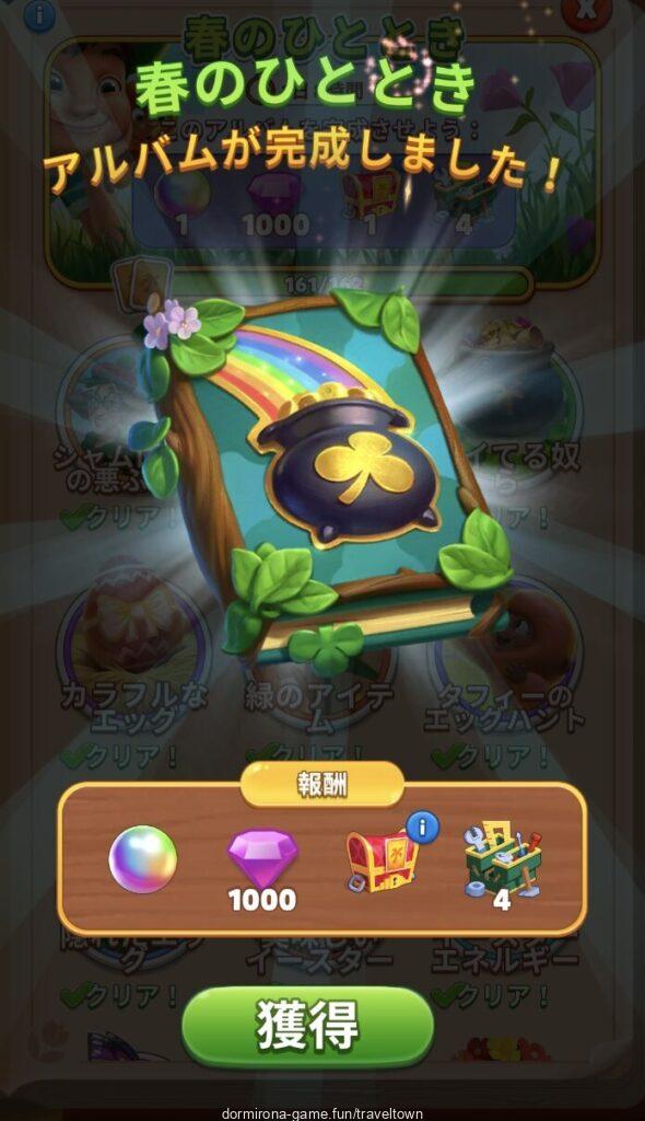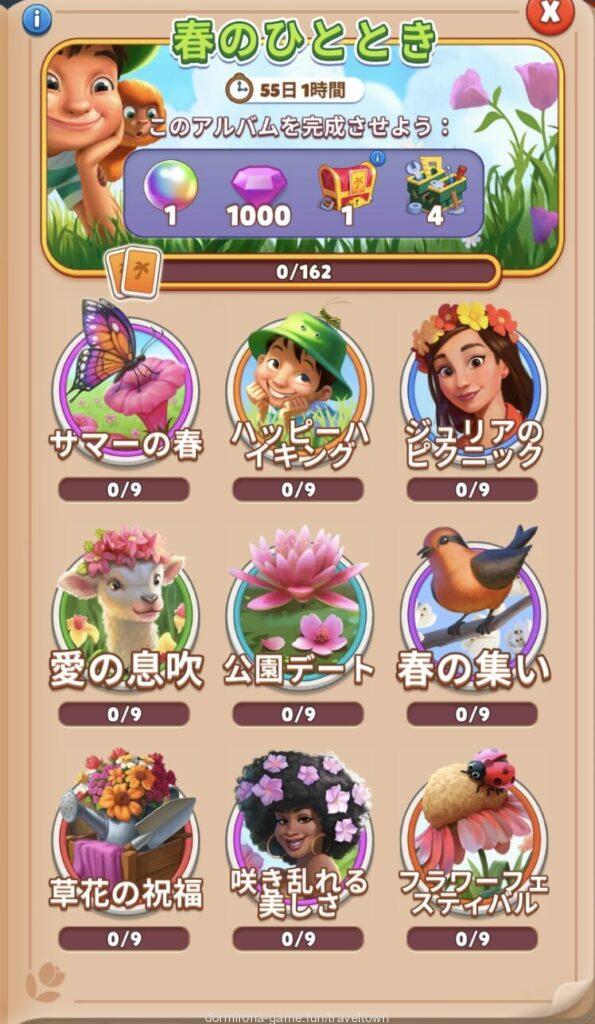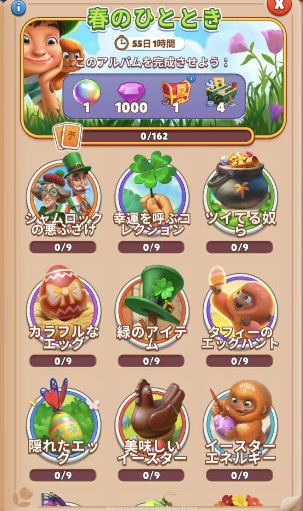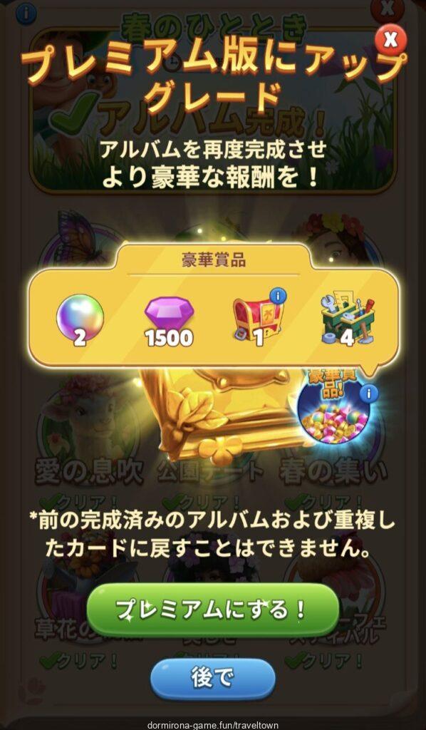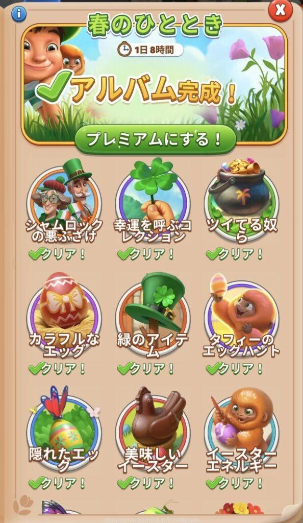 • アルバムのページごとにセットを完成させると画面上部に表示された報酬がもらえる