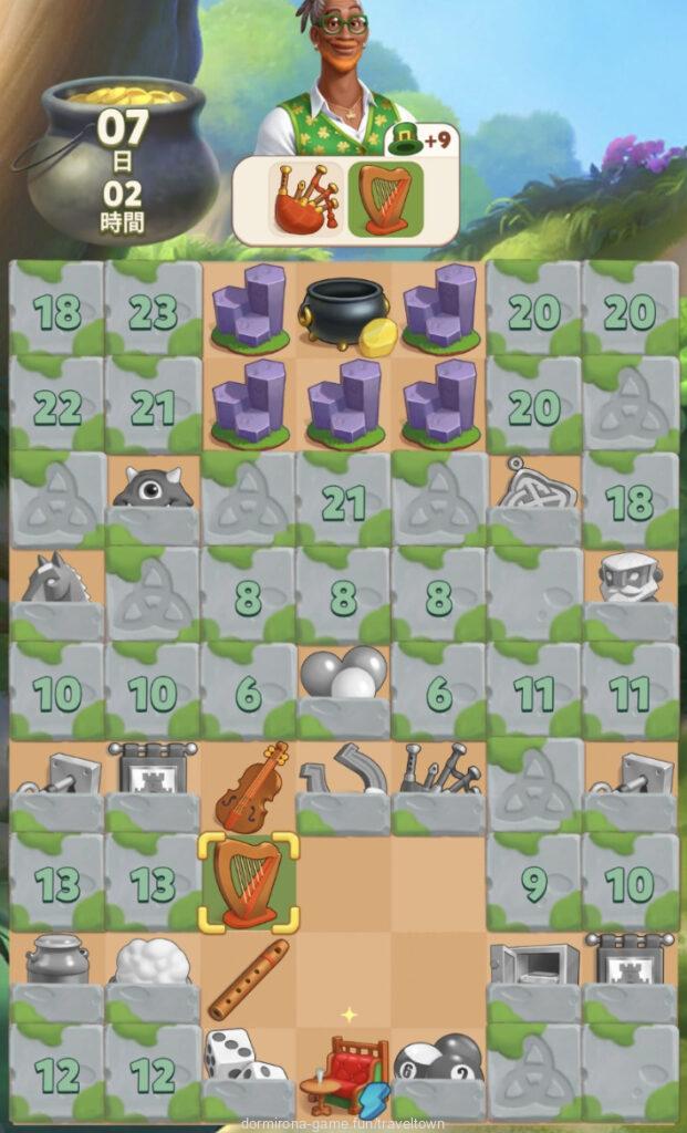 - Lv21の石に隠れている眠るレプラコーンを杖MAX(プロの杖)が盤面にある状態でタップすると活動的なレプラコーンになり、巾着が出る