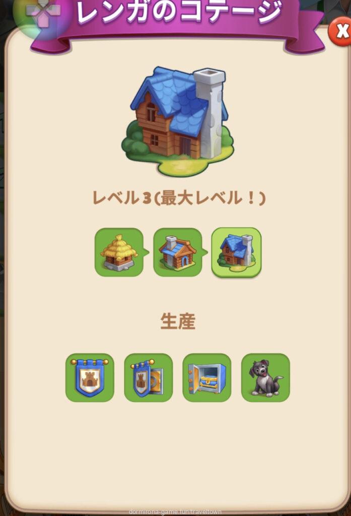 - レンガのコテージLv3になるとやんちゃな子犬が出るようになる⇒幸せなウルフハウンドのライン