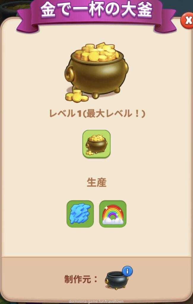 - 金でいっぱいの巨釜に金塊を4回入れるとレインボーと1回目エネルギー、2回目ダイヤが出る
