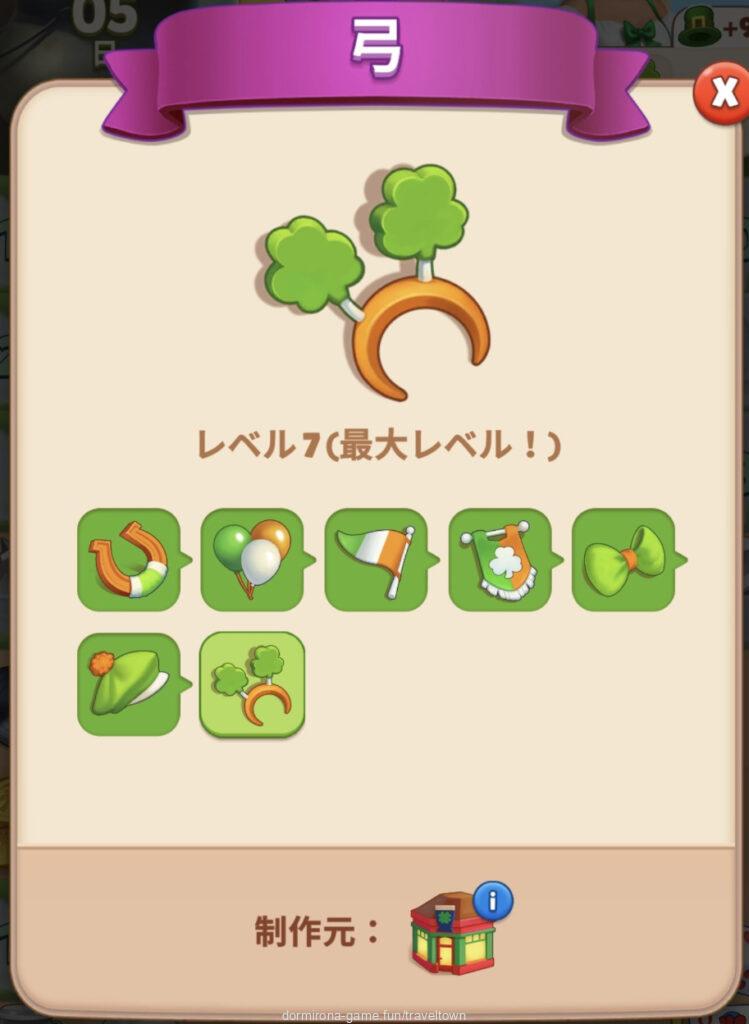 - パレードグッズLv5のヘッドバンドが盤面にある状態で幸せなウルフハウンドをタップすると洒落た犬になる⇒お祭り犬のライン