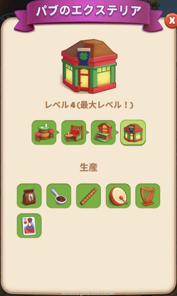 - パブのエクステリアLv4になるとコーヒー豆の袋が出るようになる⇒コーヒーのライン