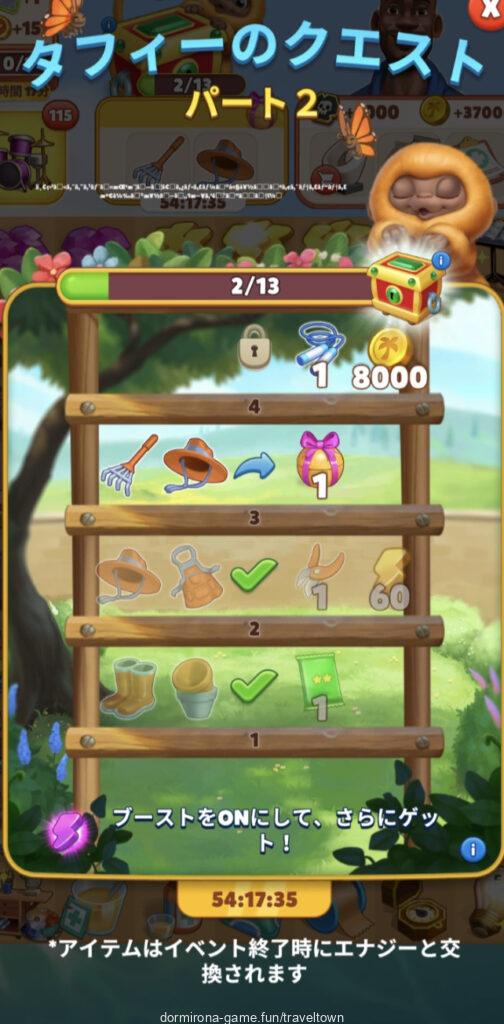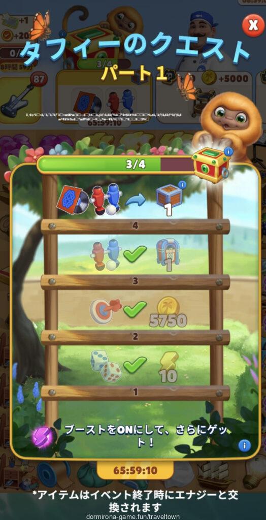 - タフィーの要求しているアイテムを納品して報酬をもらう