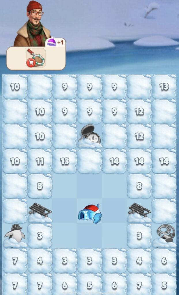 - Lv5に隠れている氷山をソリMAX(操縦可能なソリ)が盤面にある状態でタップすると壊れたスノーモービルになりそこから笛が出る⇒レスキューグッズのライン
