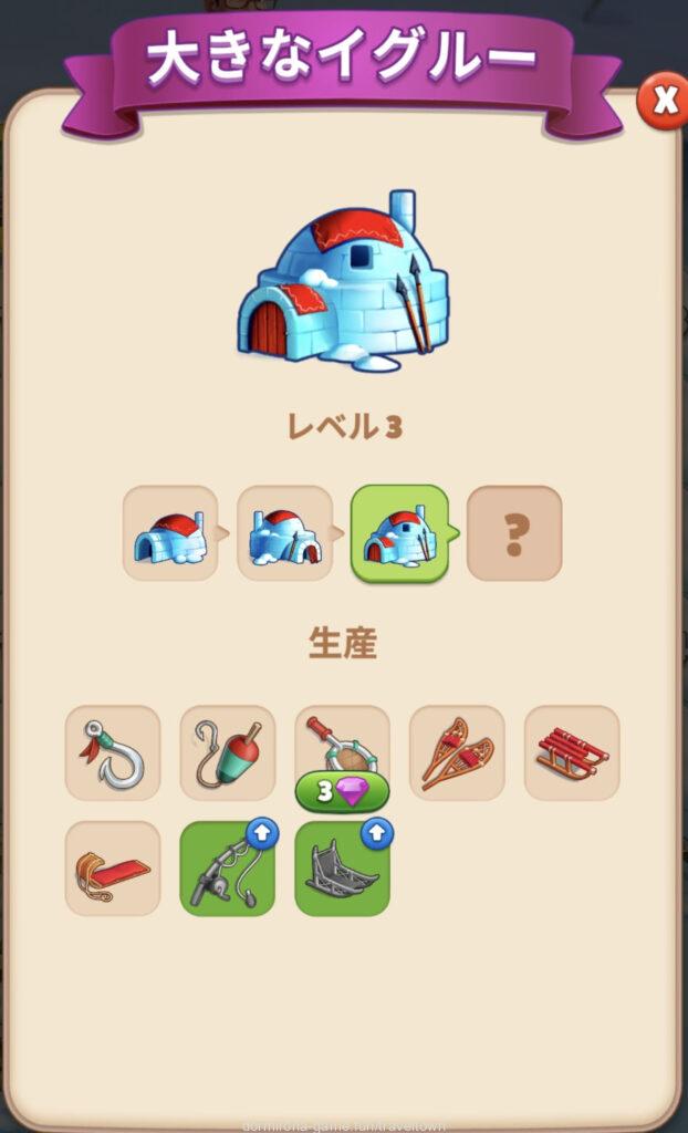 - 小さなイグルーLv2になると小さな雪靴が出る⇒ソリのライン