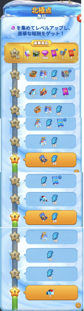- 盤面の雪に書いてある数字のレベルに達するとオープンする