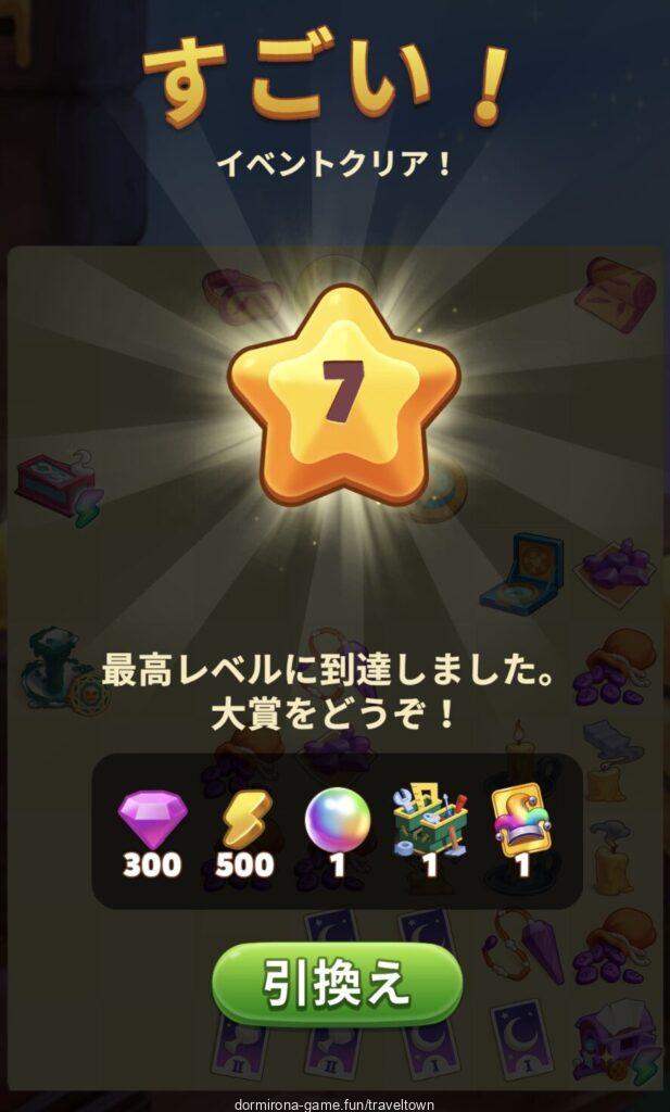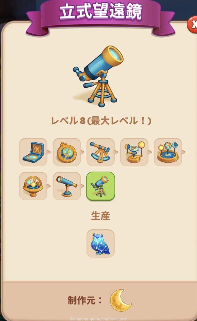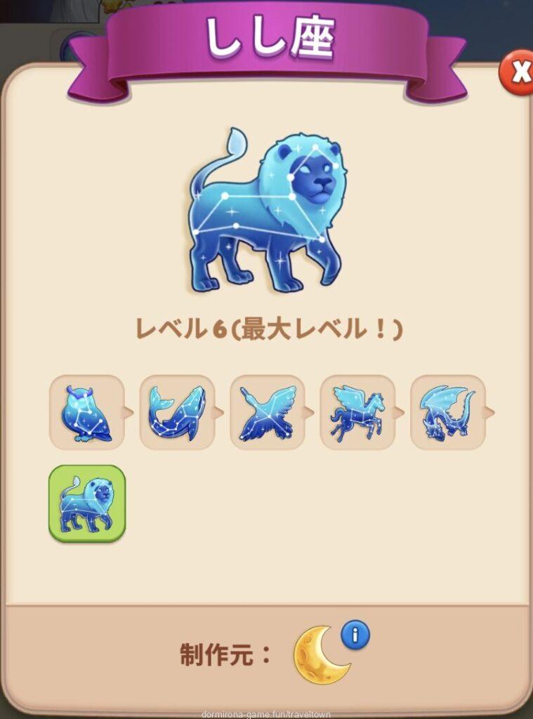 天体グッズMAX(立式望遠鏡)はタップできるようになり(8タップ)、ふくろう座が出る⇒星座のライン - フォルトゥナの水晶を星座MAX(しし座)が盤面にある状態でタップすると大胆な予言が出る