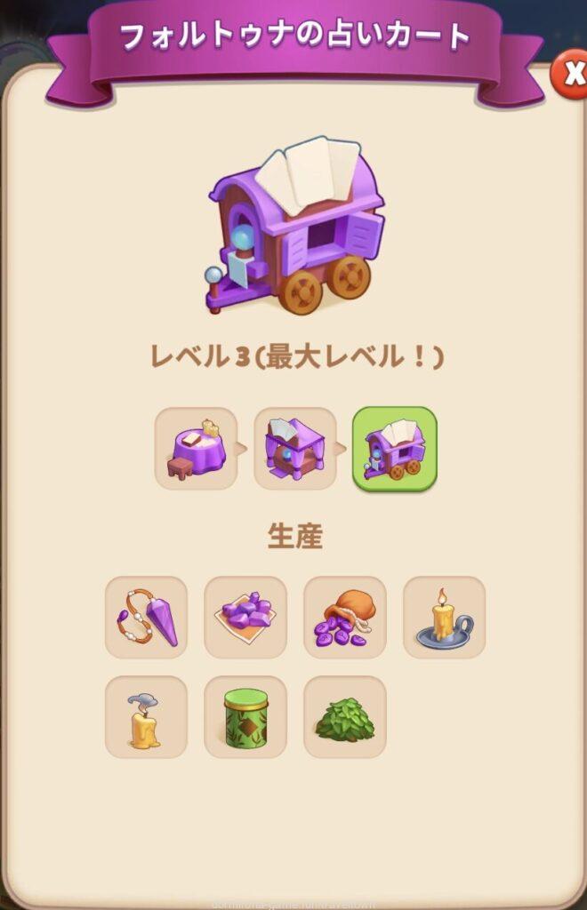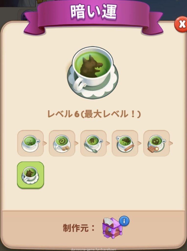 - Lv3に隠れているフォルトゥナの占い台と初期配置のものをマージしてフォルトゥナの占いブースLv2にすると茶筒が出るようになる⇒お茶のライン