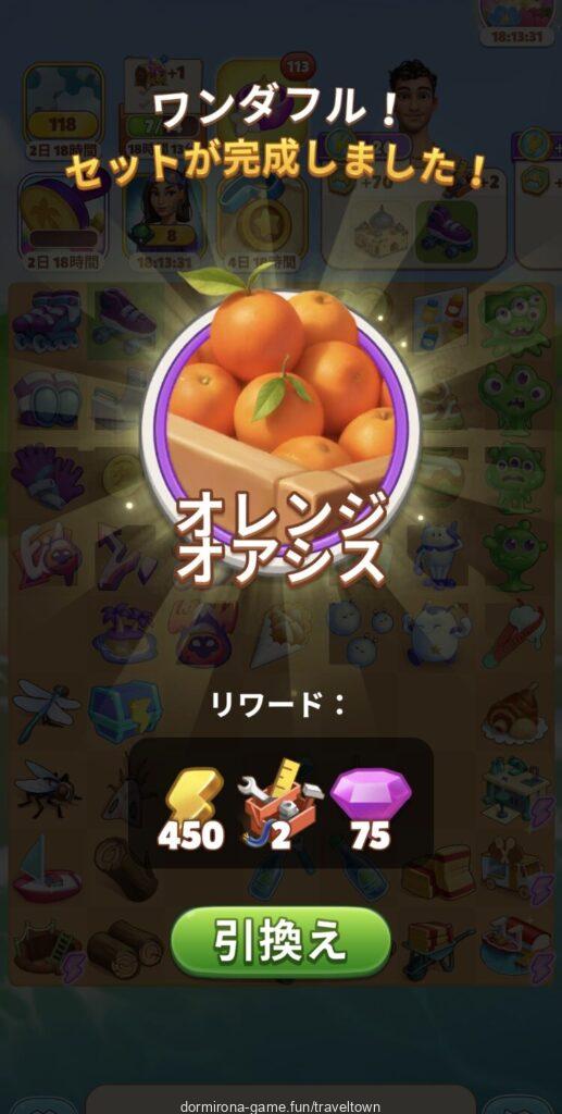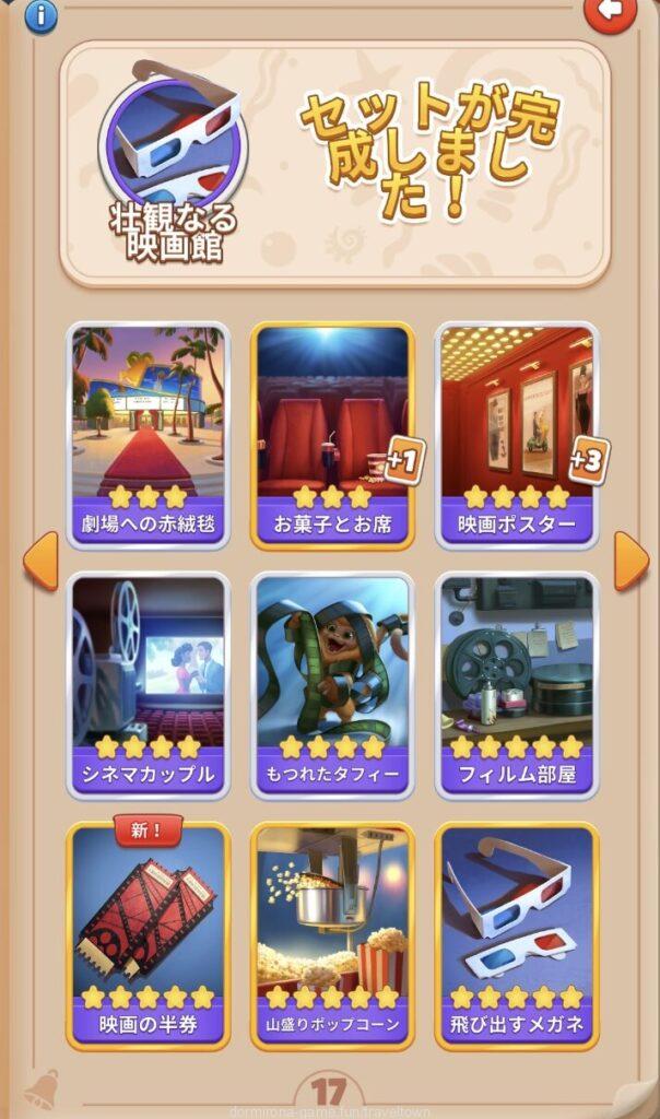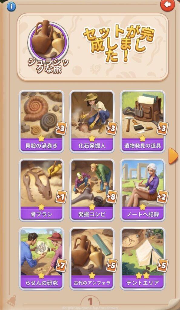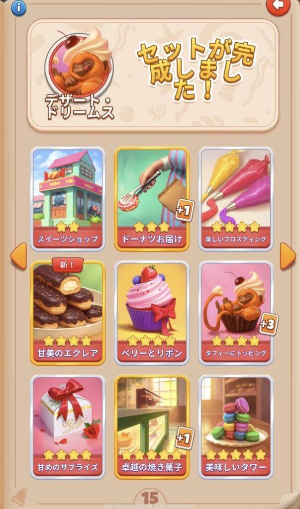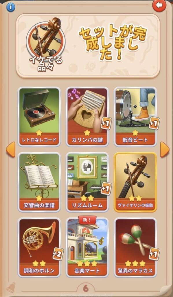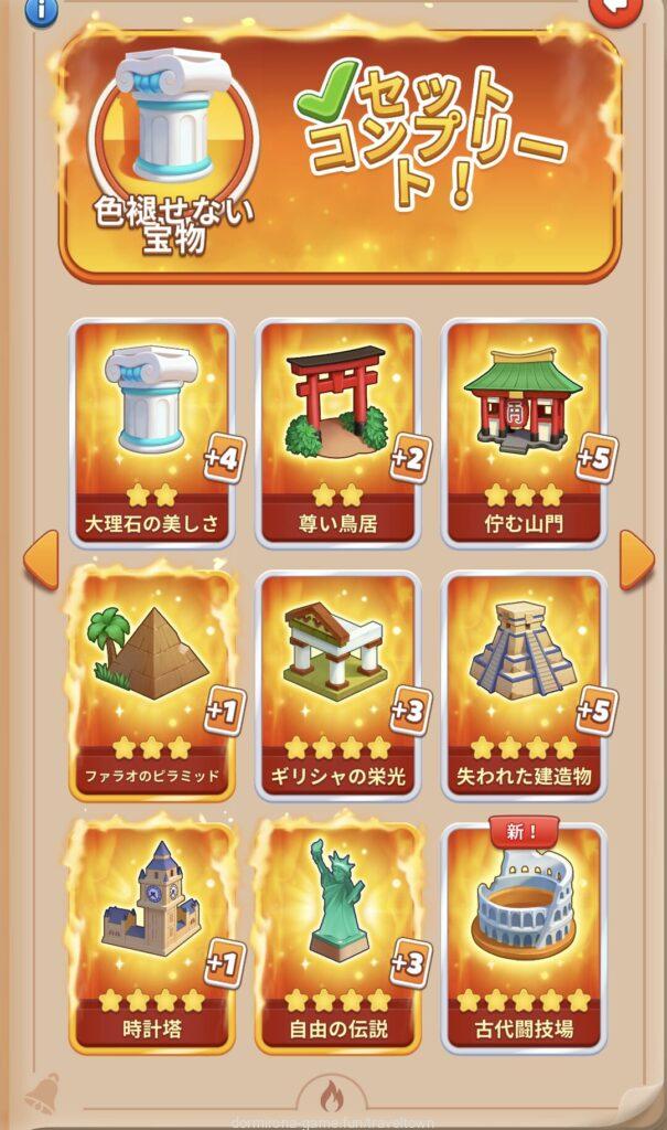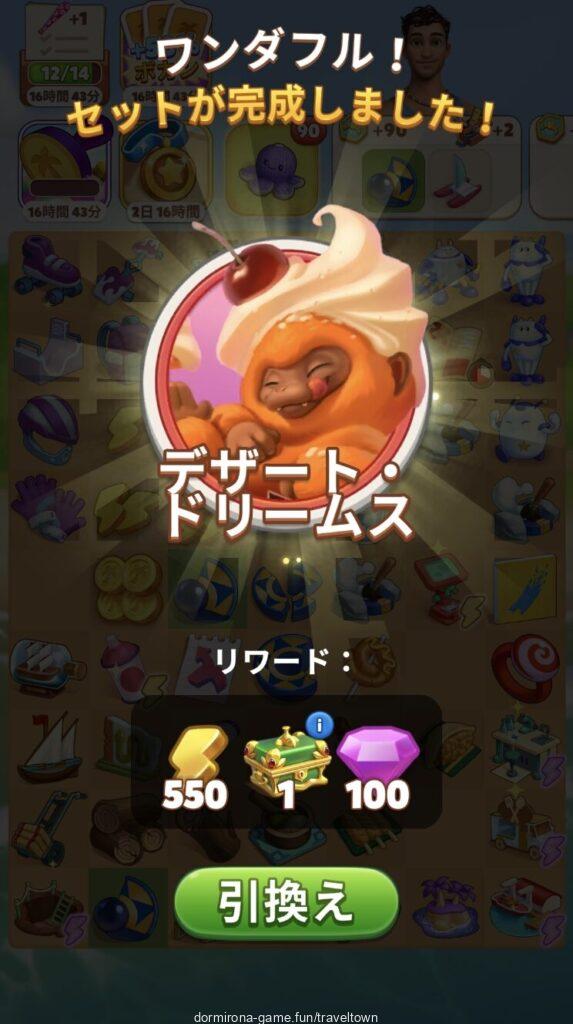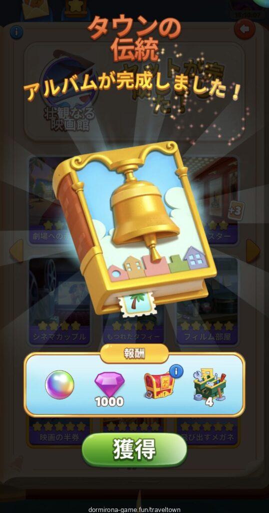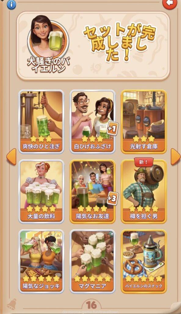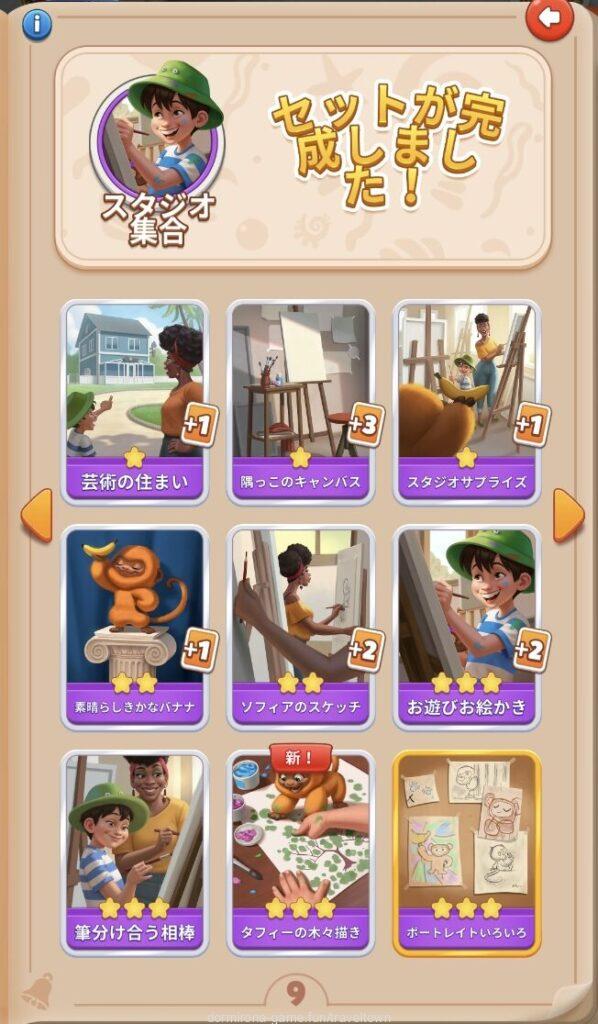 - アルバムのページごとにセットを完成させると画面上部に表示された報酬がもらえる