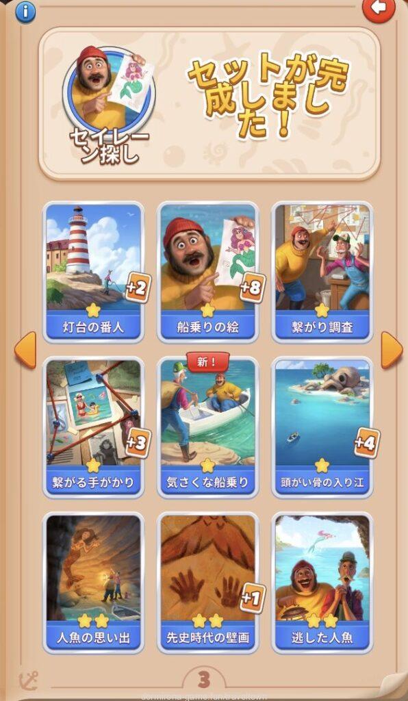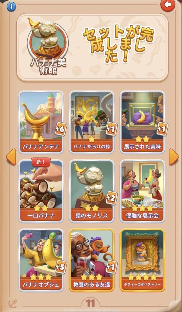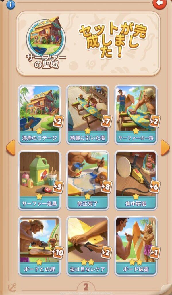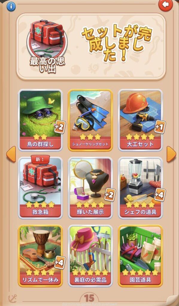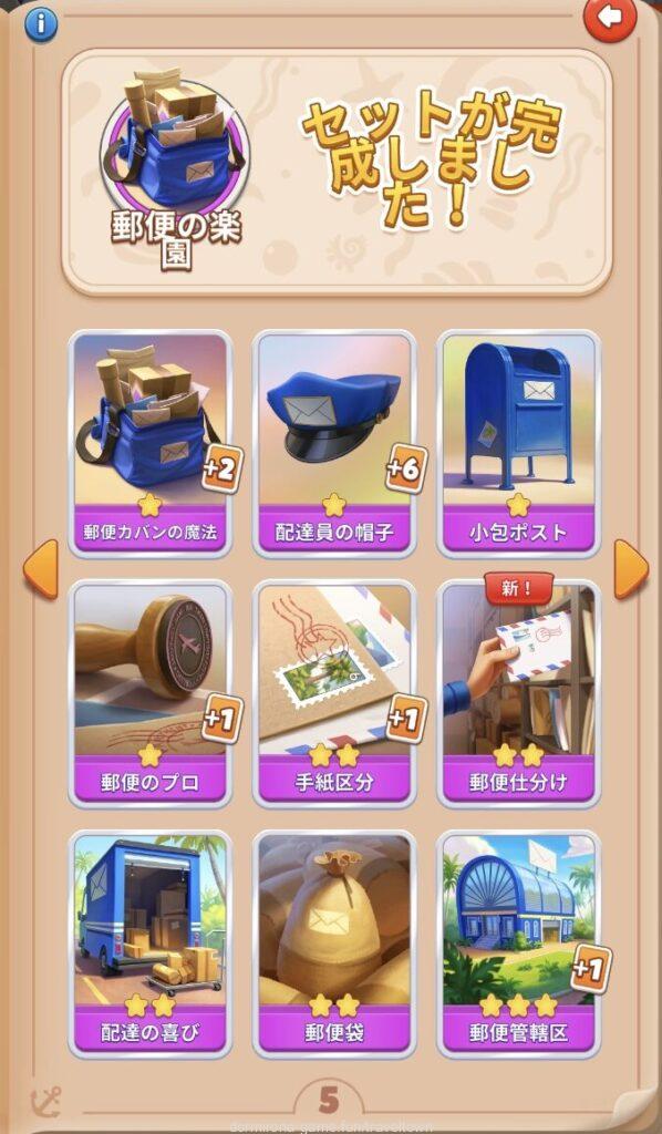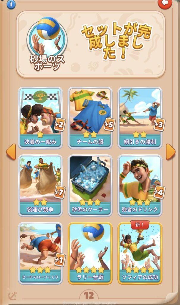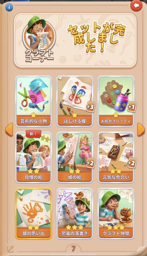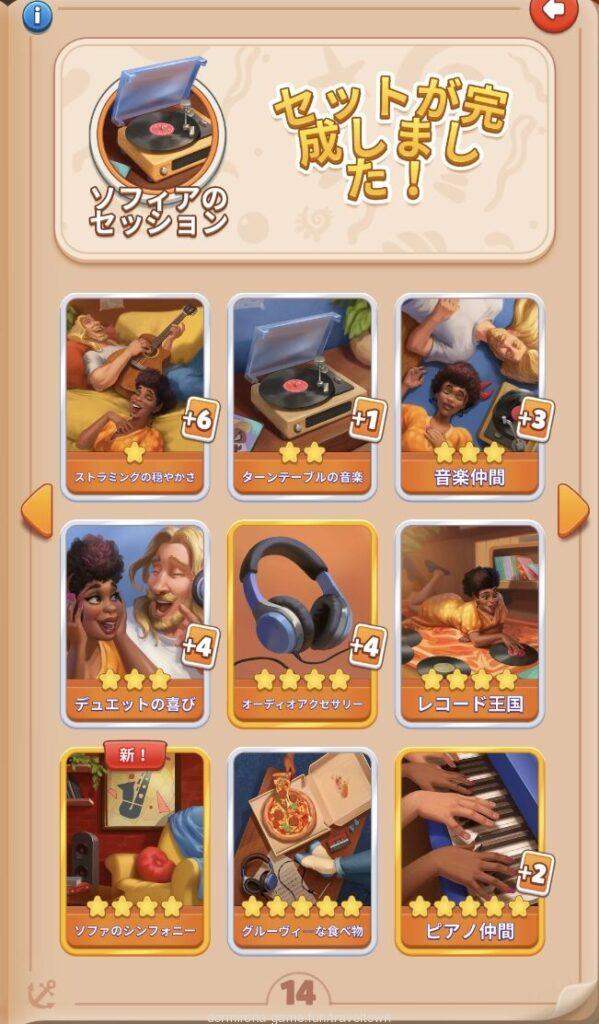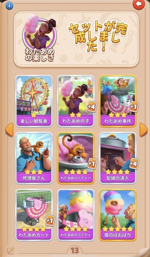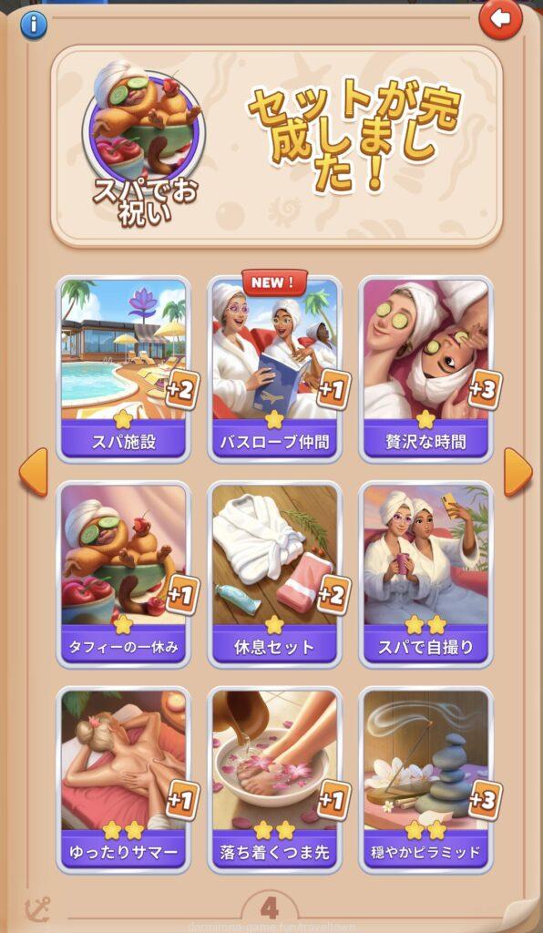 - アルバムのページごとにセットを完成させると画面上部に表示された報酬がもらえる