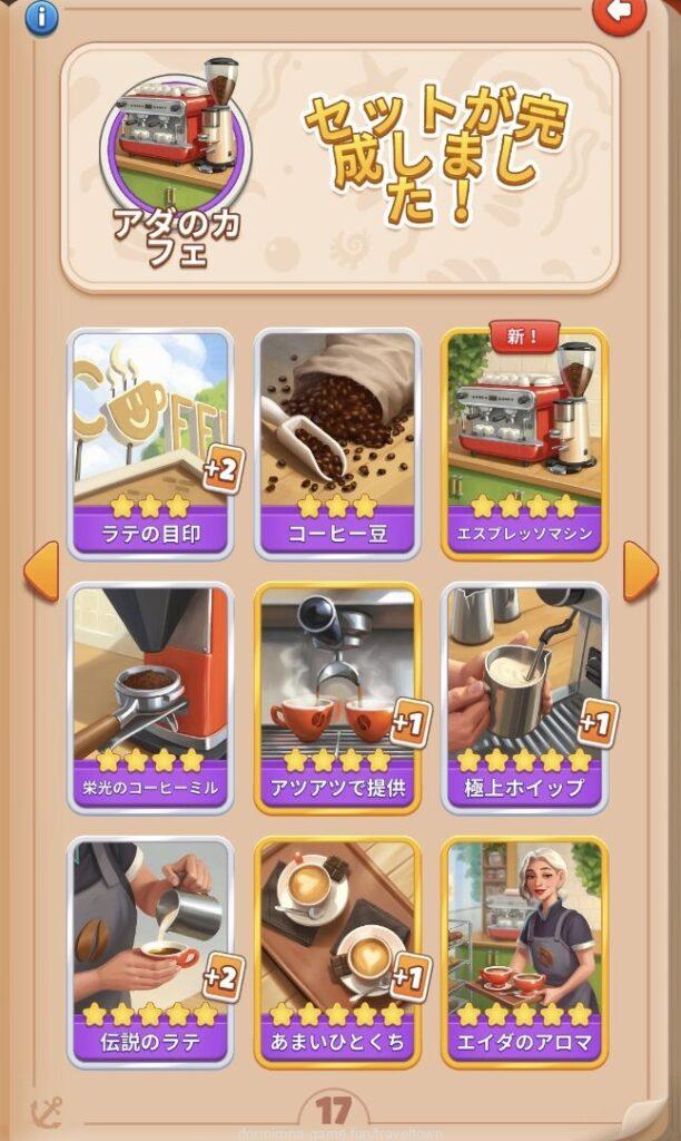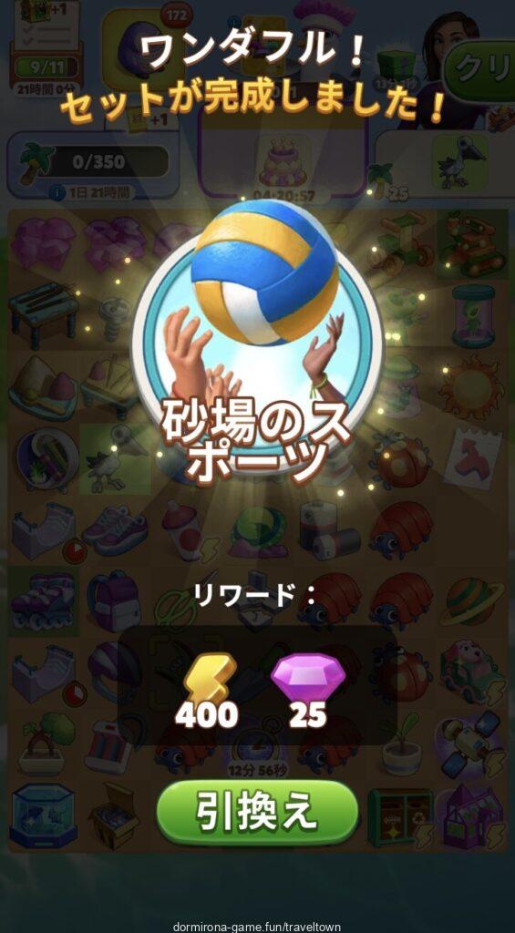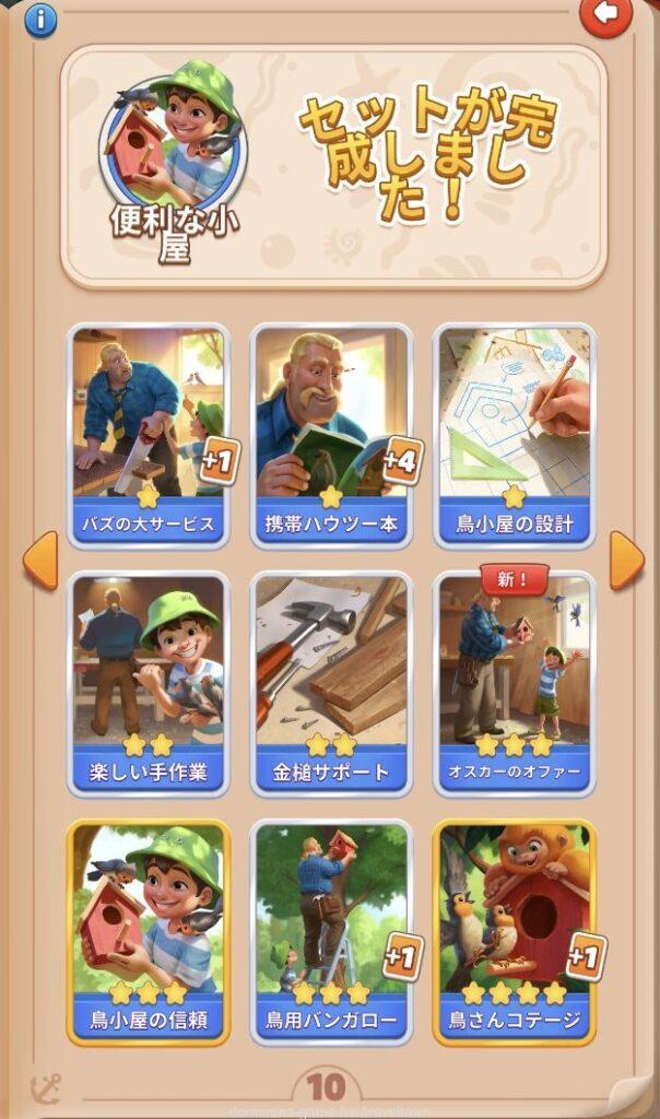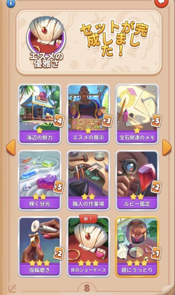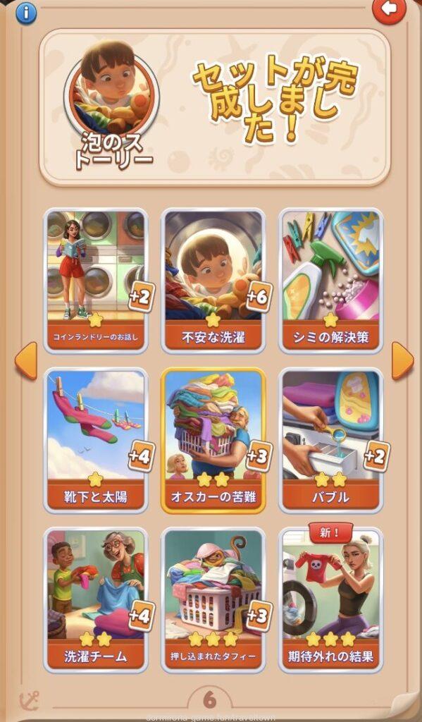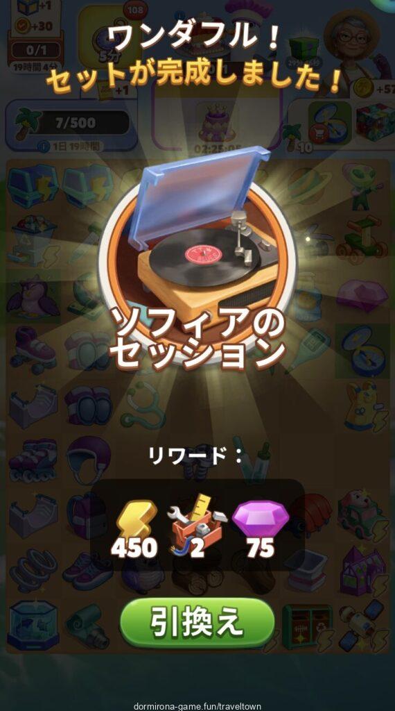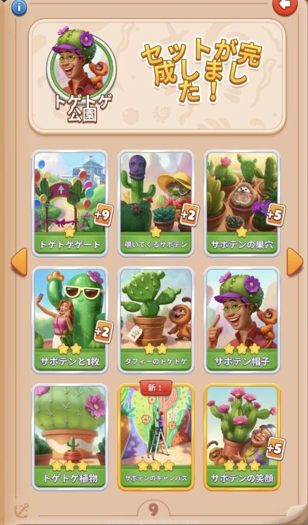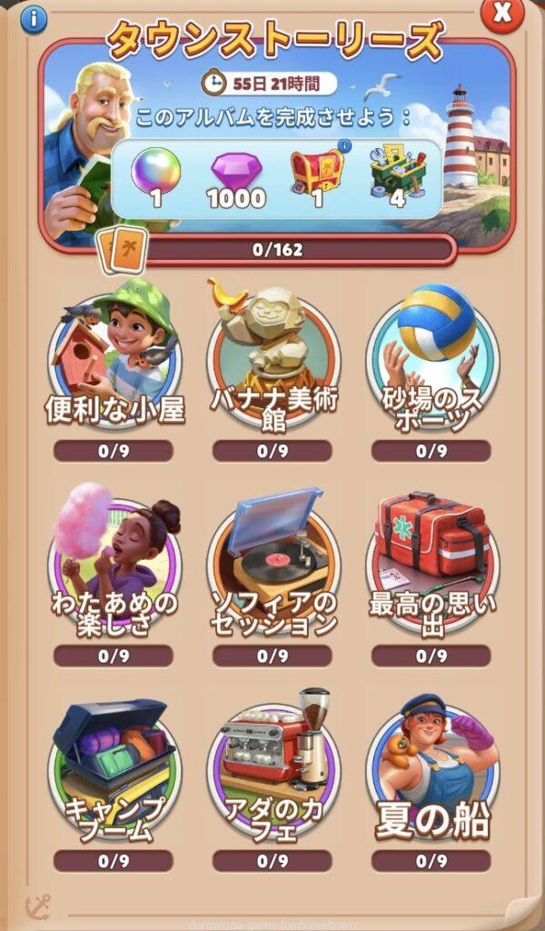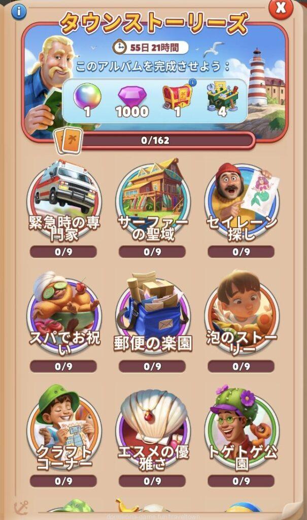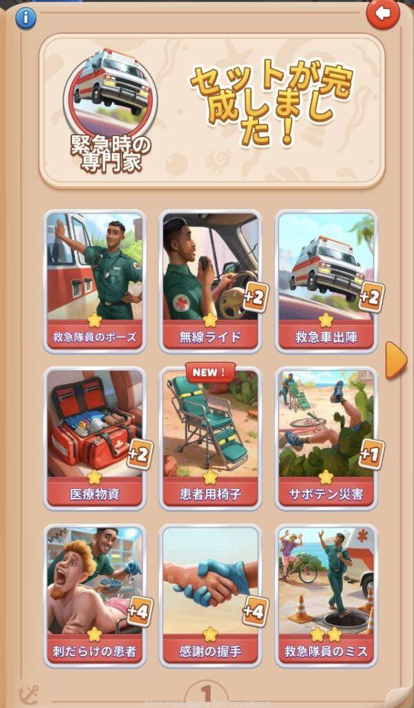 - アルバムのページごとにセットを完成させると画面上部に表示された報酬がもらえる